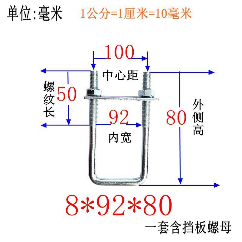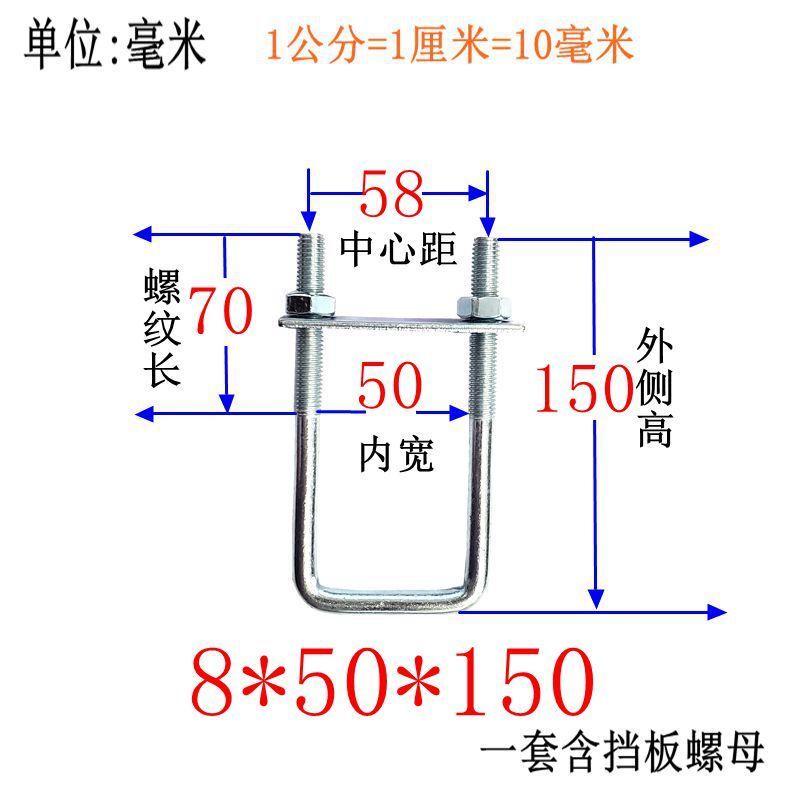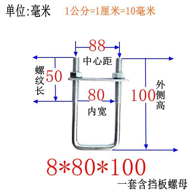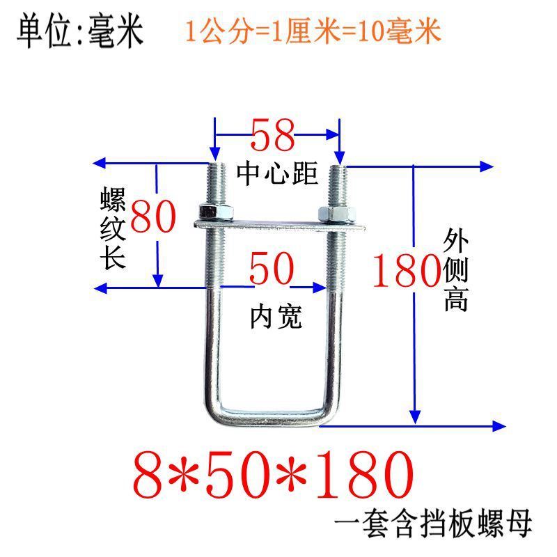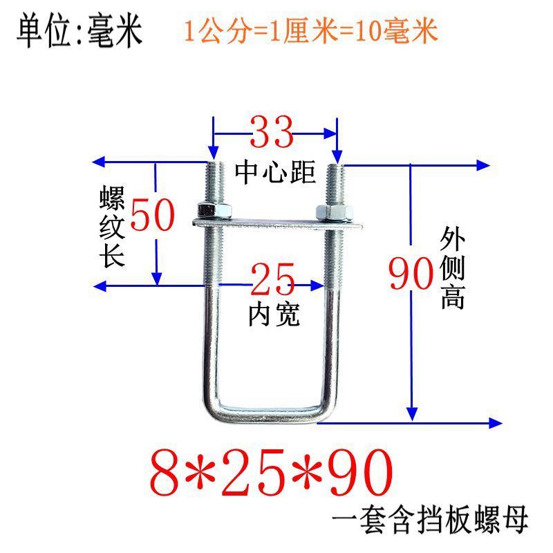 M8 Fixing Screw M8 Galvanized Square Right-Angle U-Shaped Bolt Extended Card Tube Buckle Clip Hoop With Baffle