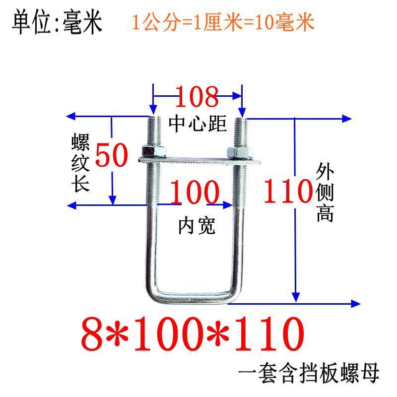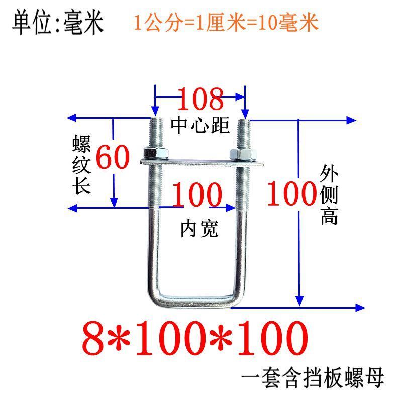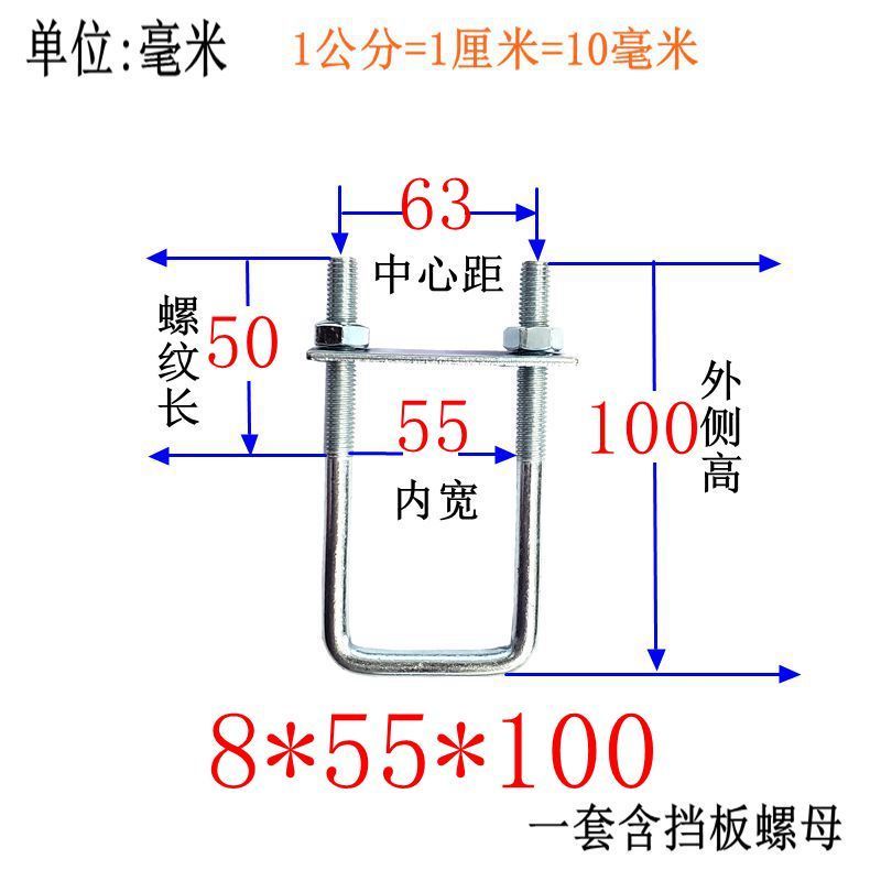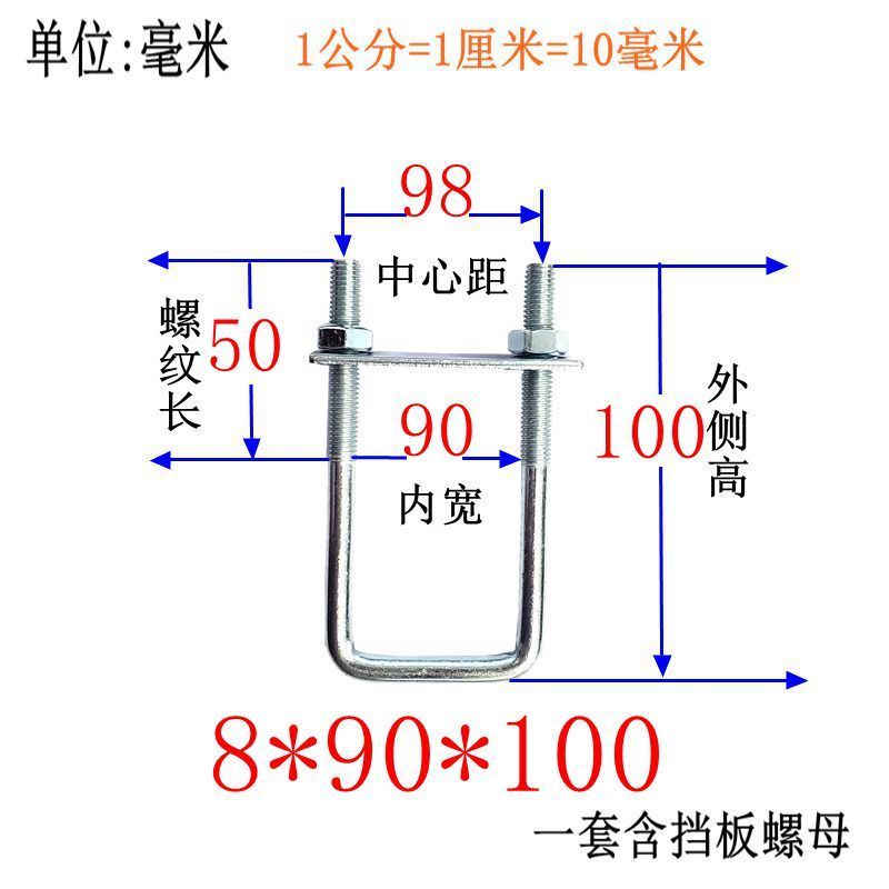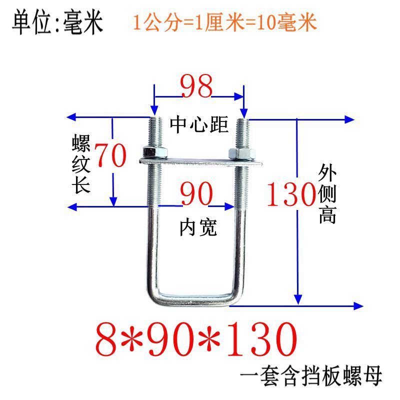 M8 Fixing Screw M8 Galvanized Square Right-Angle U-Shaped Bolt Extended Card Tube Buckle Clip Hoop With Baffle