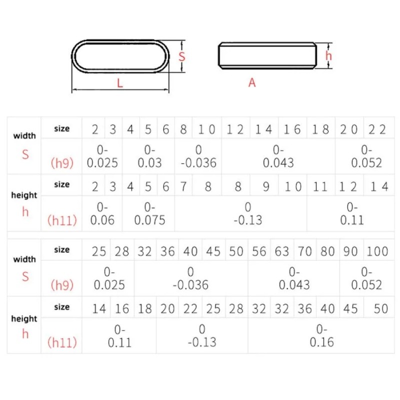 M8 M10 M12 M14 M16 GB1096 Carbon Steel A Type Flat Key Dowel Drive Shaft Parallel Round End Head Keys