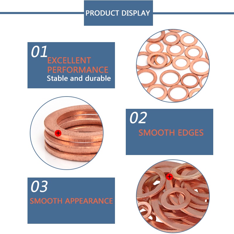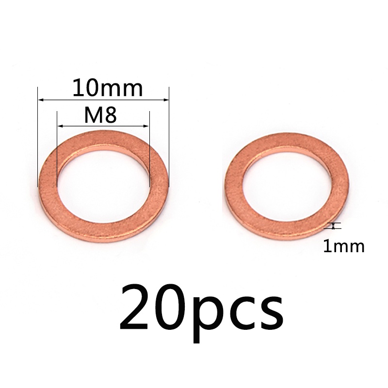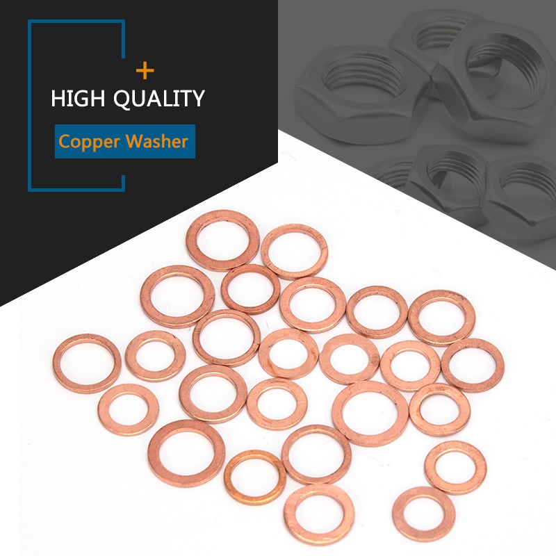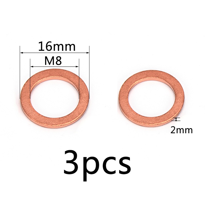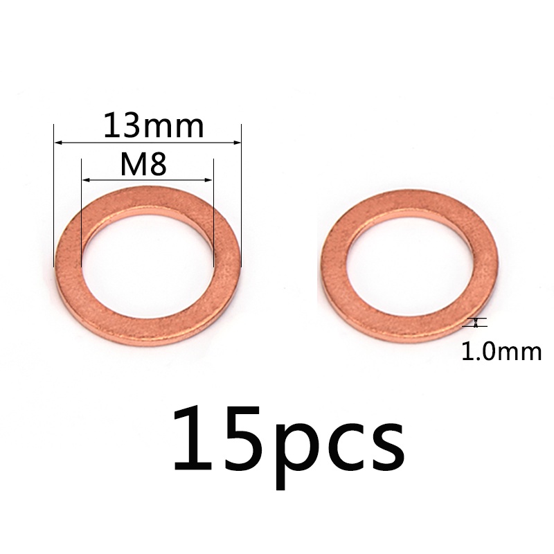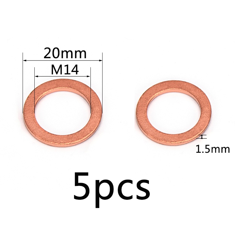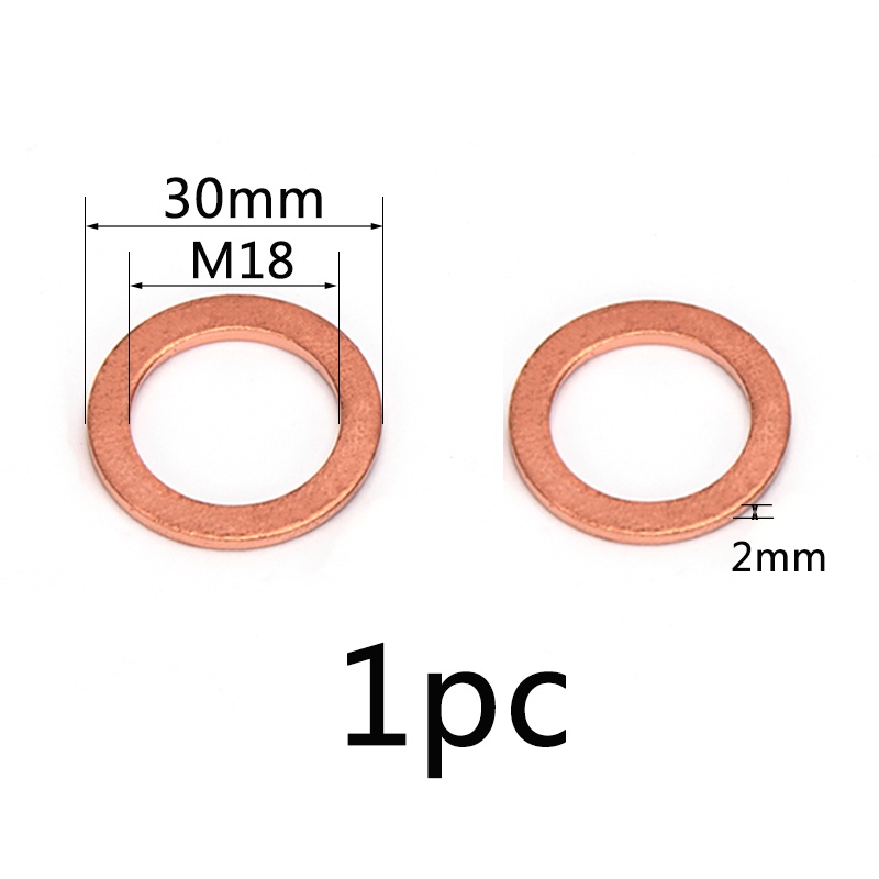 M8 M10 M12 M14 M16 M18 M20 M22 M24 M27 M30 M33 M36 Red Copper Brass Flat Gasket Crush Sealing Washer Flat Seal Gasket Ring OD 10mm-45mm Thickness 1mm 1.5mm 2mm