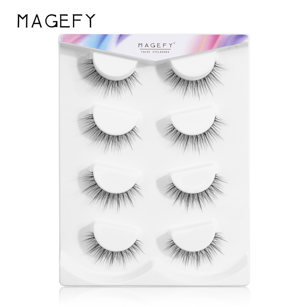 Magefy 4 Pairs Of False Eyelashes Transparent Stem Natural