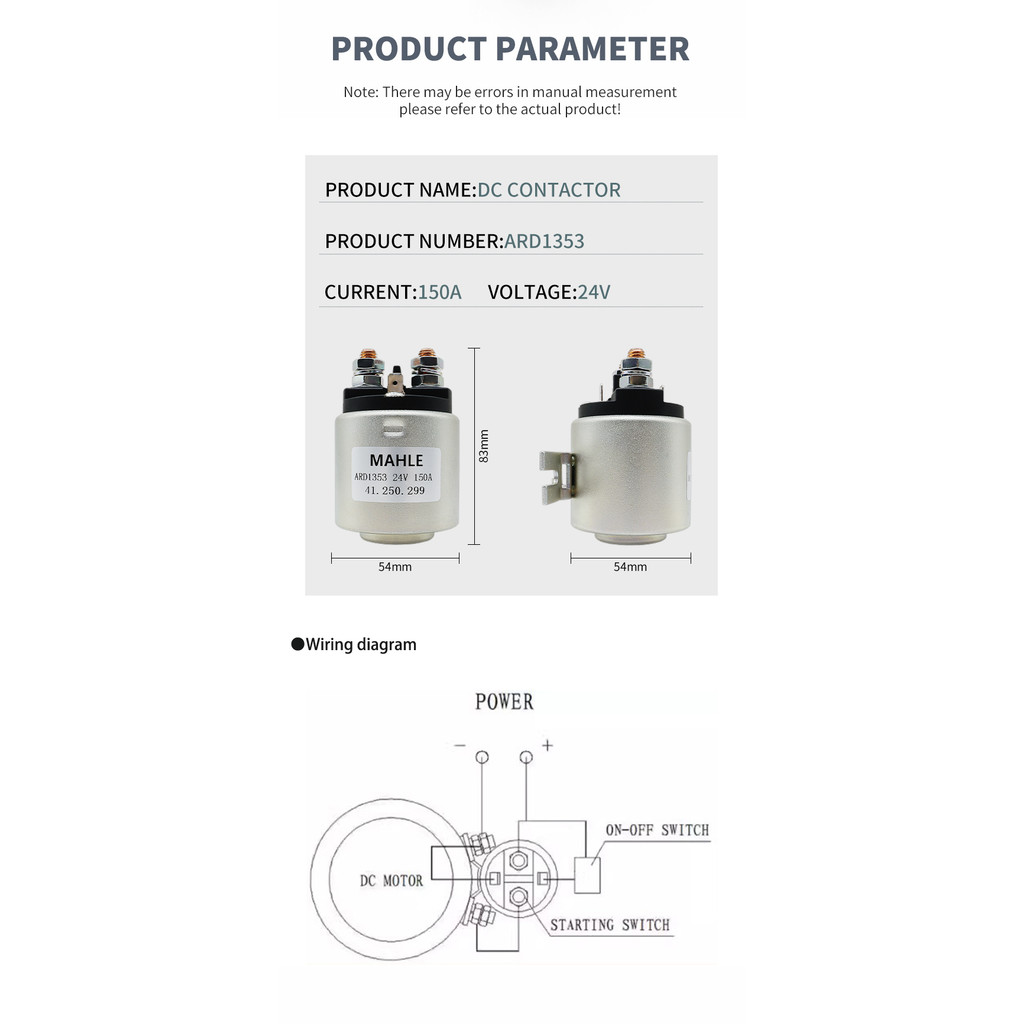 MAHLE Lift Pump Contactor 24V 150A Magnetic Contactor Relay for Electric Forklift
