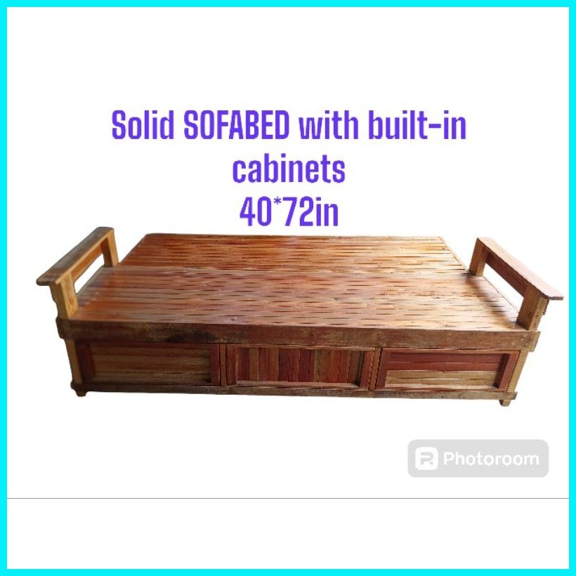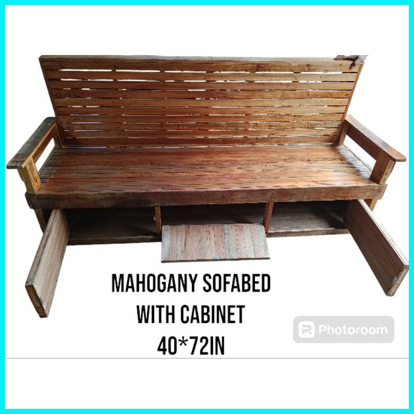 MAHOGANY WOOD SALA SET /SOFABED W/ BUILT-IN CABINETS