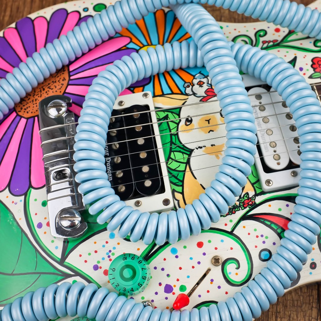 MAKA Premium Guitar Coil Cable 30 Feet(8M), 1/4 inch Right Angle to Straight, Instrument Coiled Curly Cord for Guitar Bass, Purple/White/Surf Green