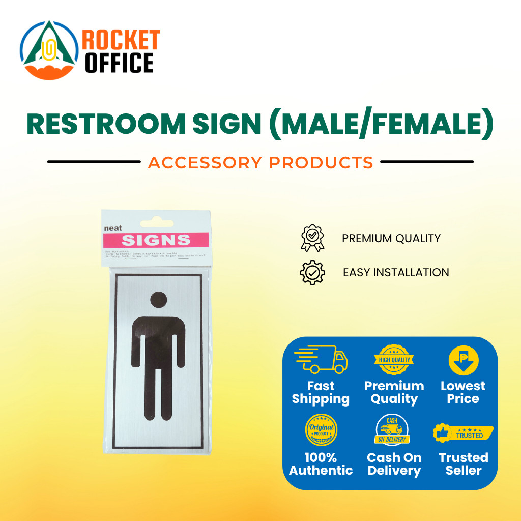 MALE & FEMALE SIGN - COMFORT ROOM , REST ROOM , TOILET - Aluminum METAL Plate w/ STICKER Signage
