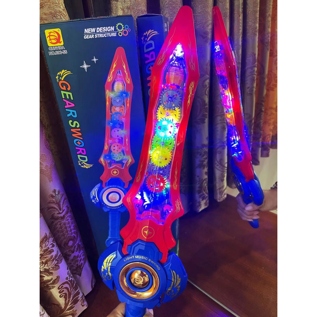MALL QUALITY Kids Toy Medium Size Sword w/LIGHTS, MUSIC AND SEE THRU MOVABLE PARTS No Smell Plastic