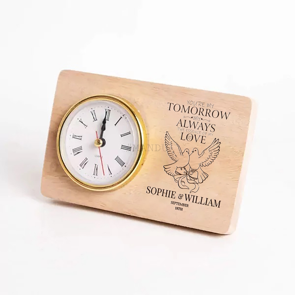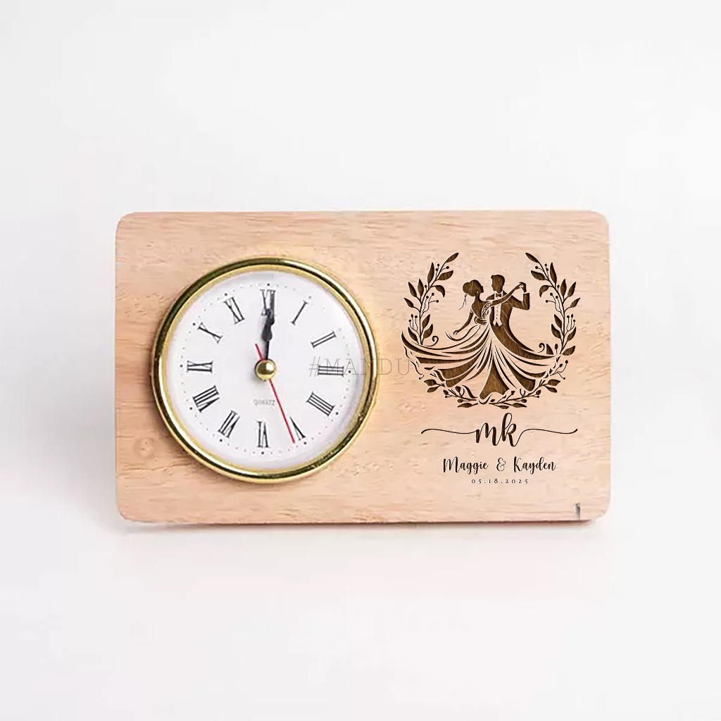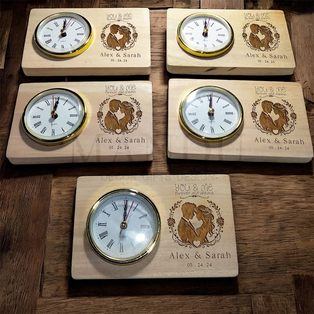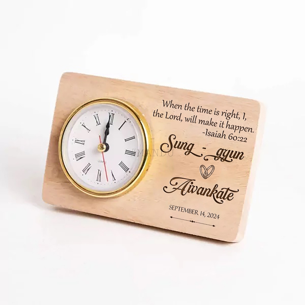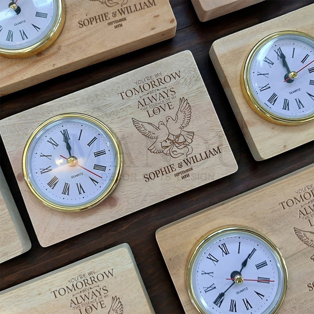 MANDU Personalized Mini Wooden Desk Clock With Stand - Laser Engraved Wedding Souvenir, Gift & Decor