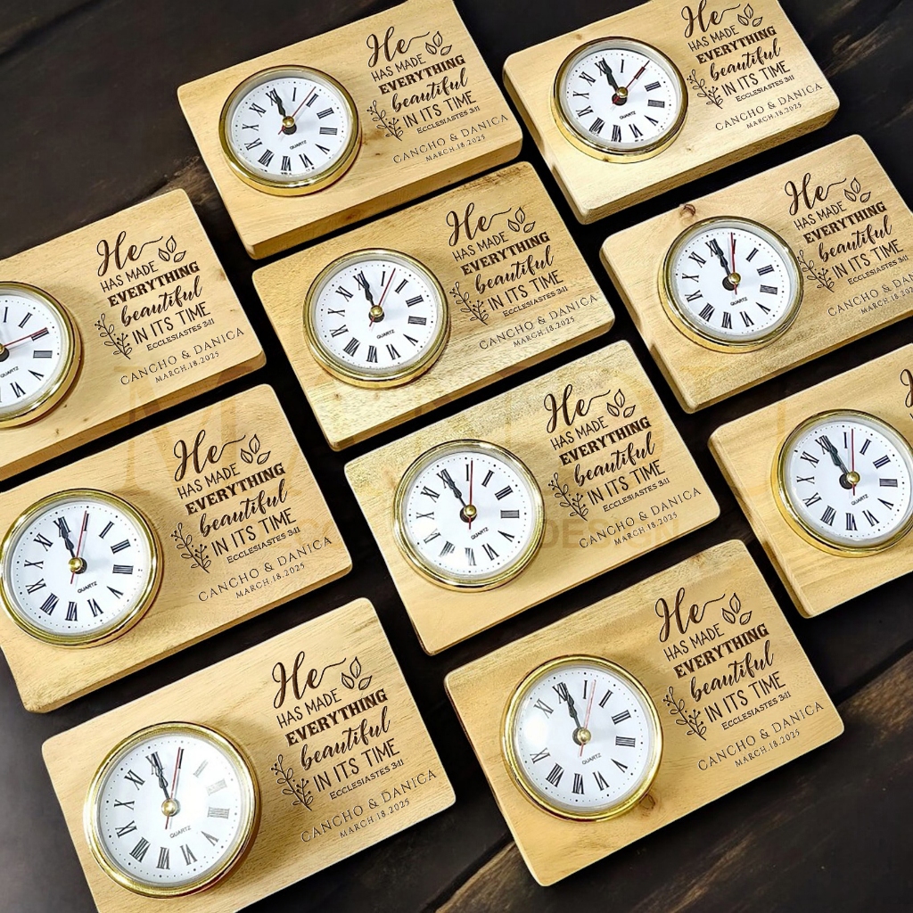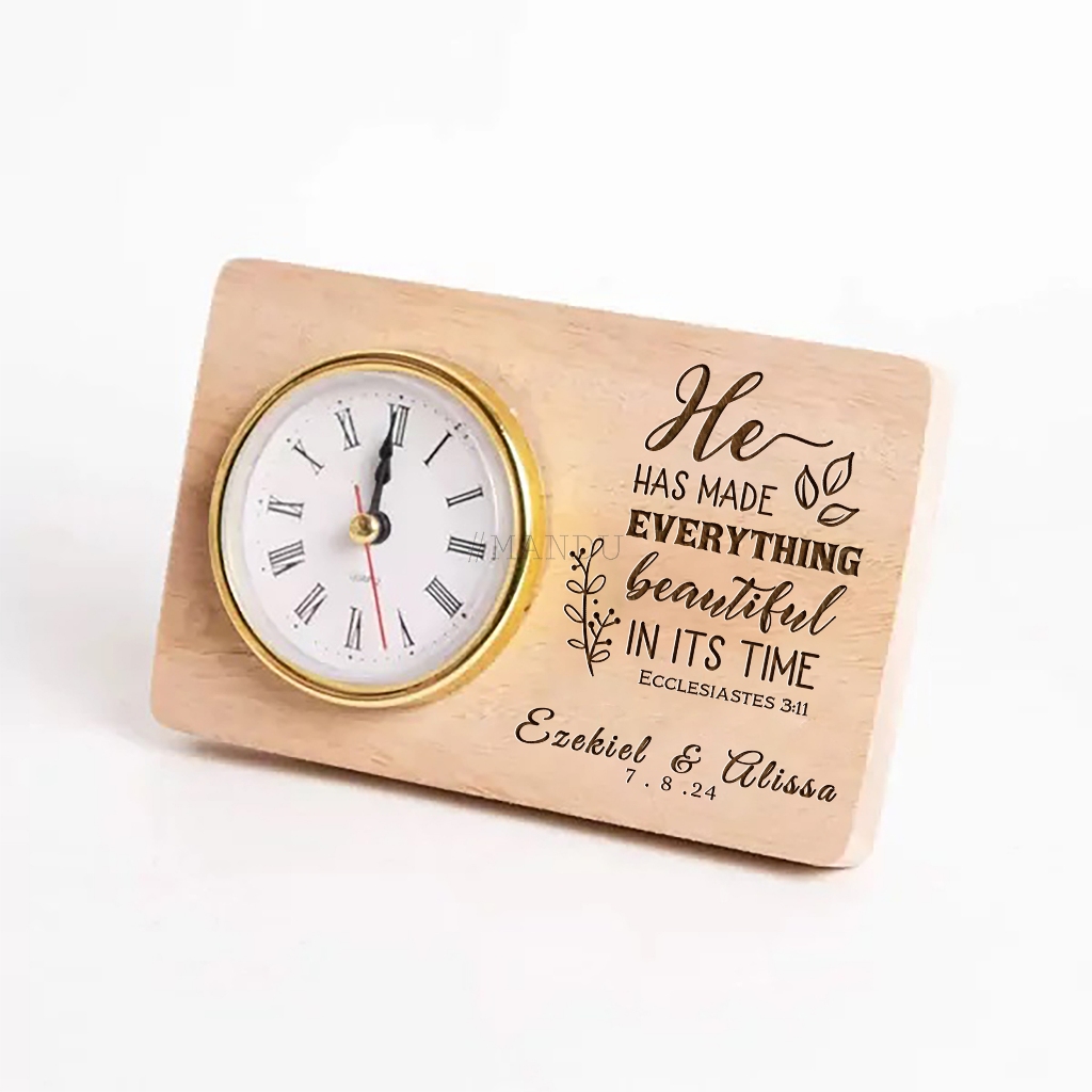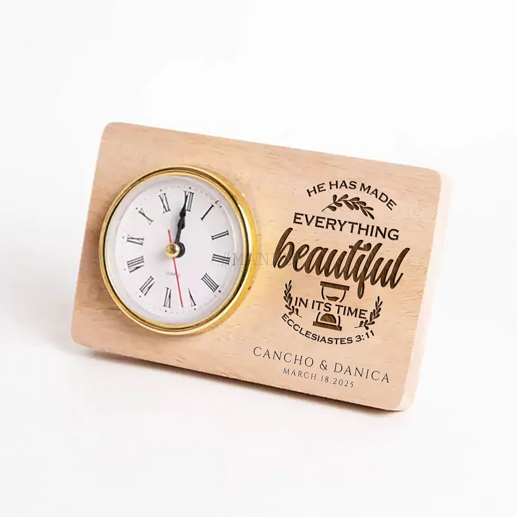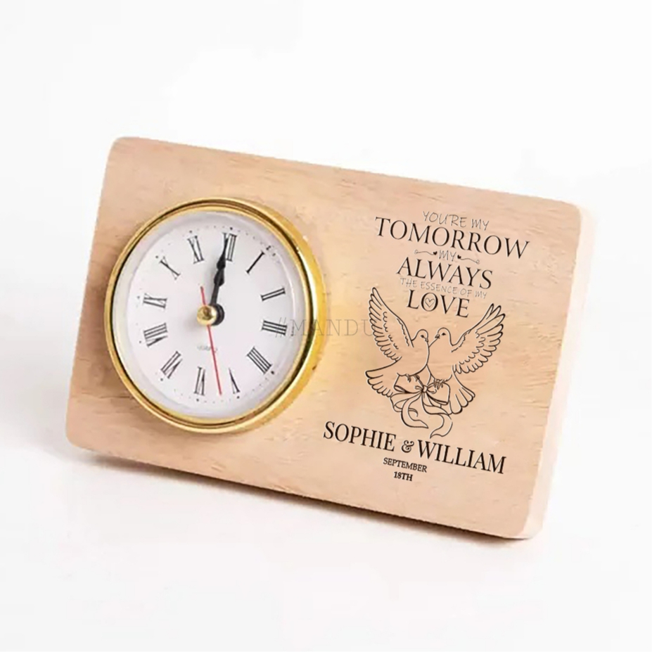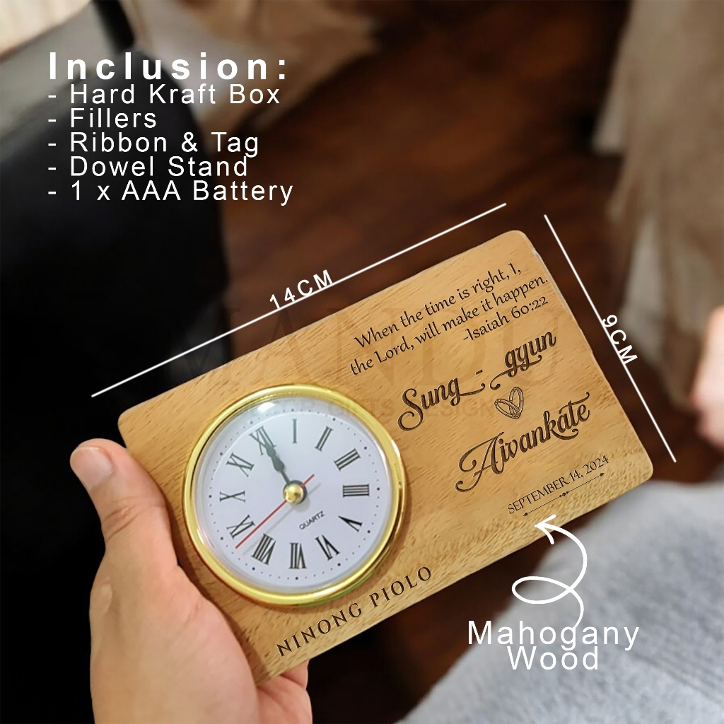 MANDU Personalized Mini Wooden Desk Clock With Stand - Laser Engraved Wedding Souvenir, Gift & Decor