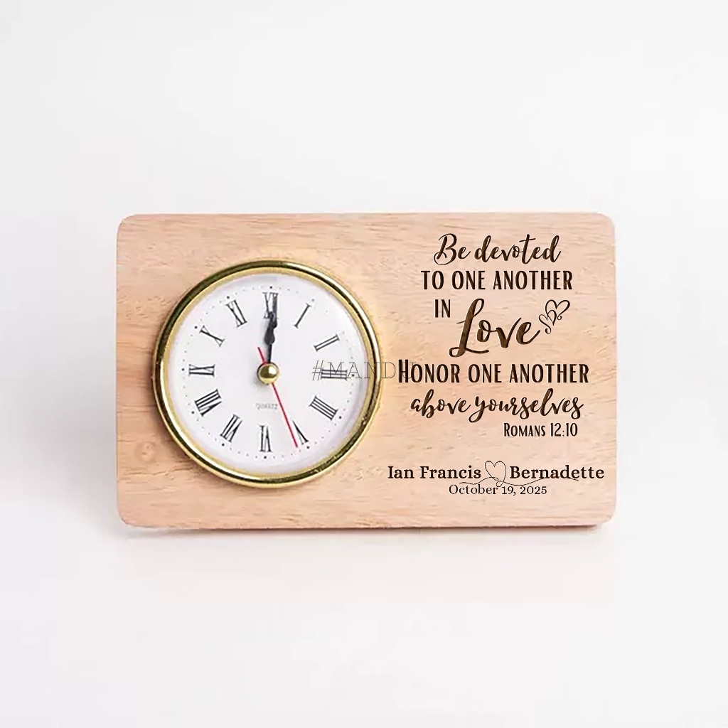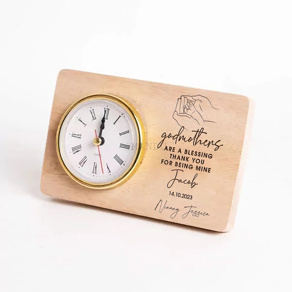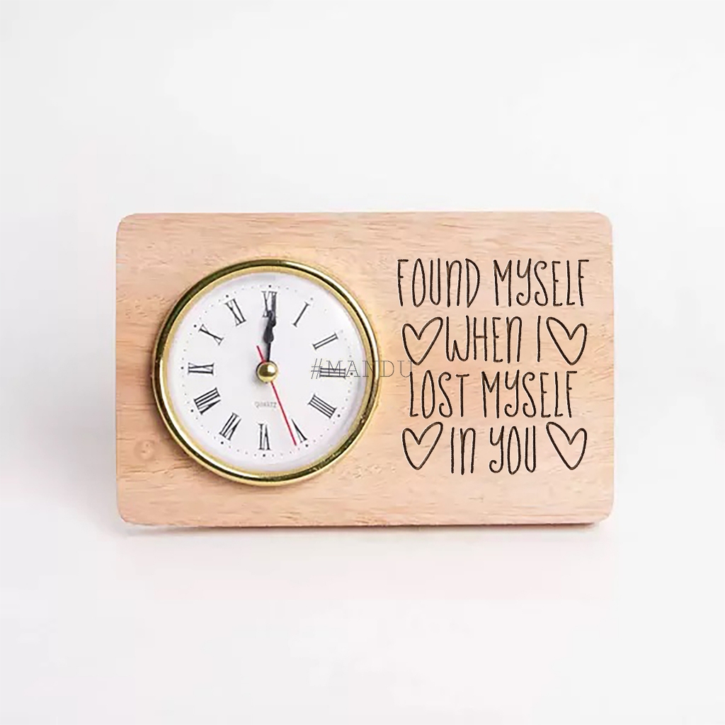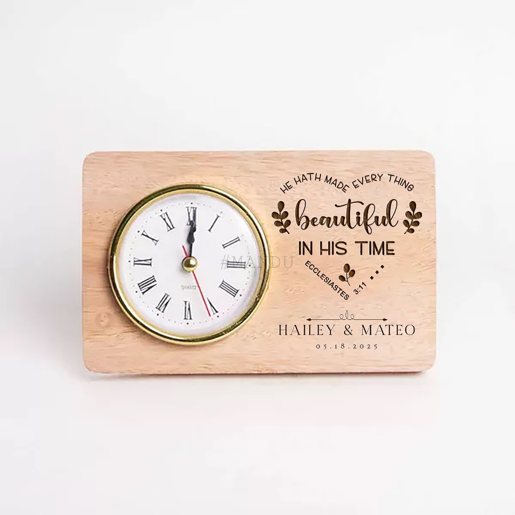 MANDU Personalized Mini Wooden Desk Clock With Stand - Laser Engraved Wedding Souvenir, Gift & Decor