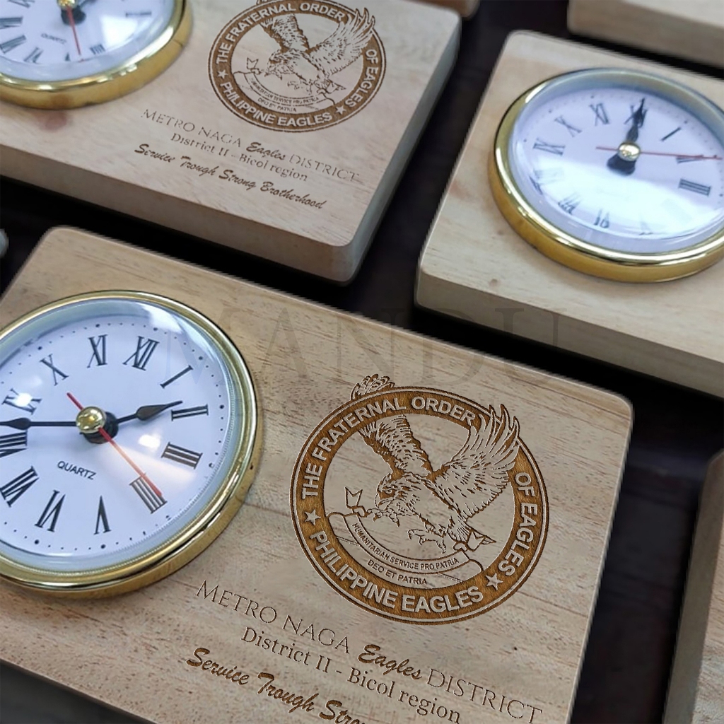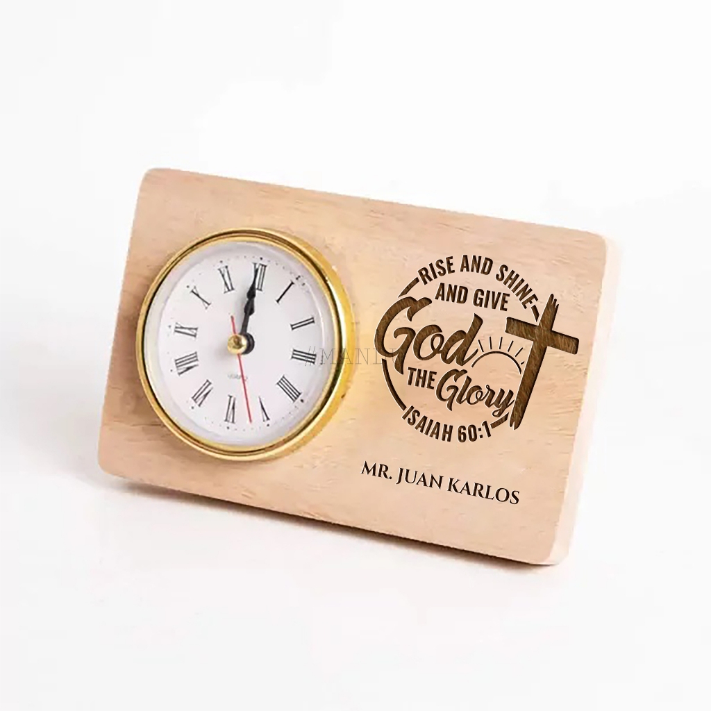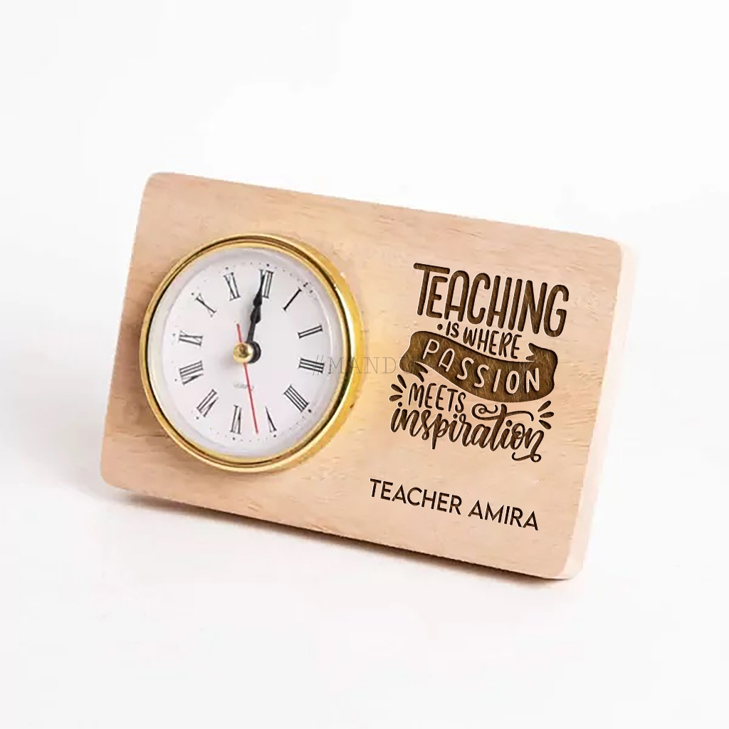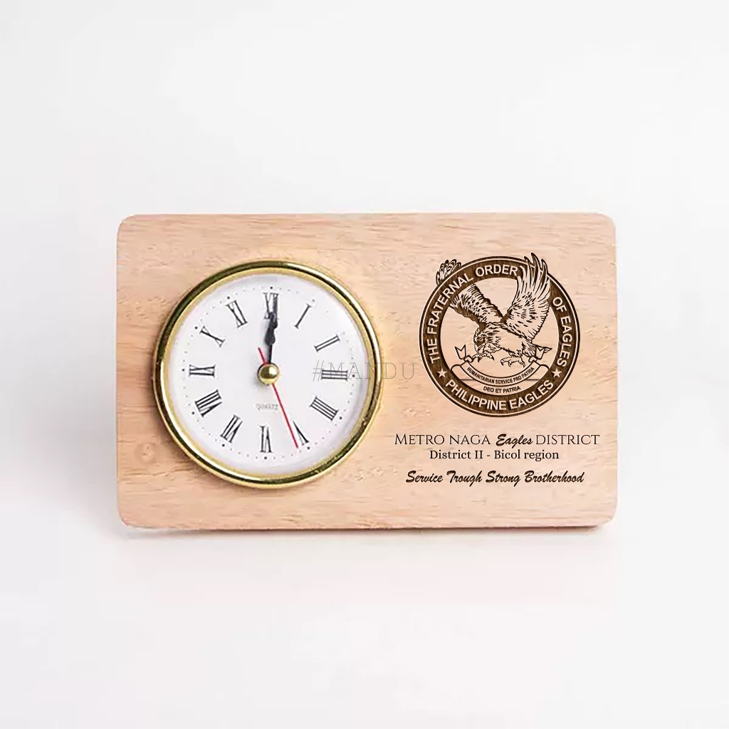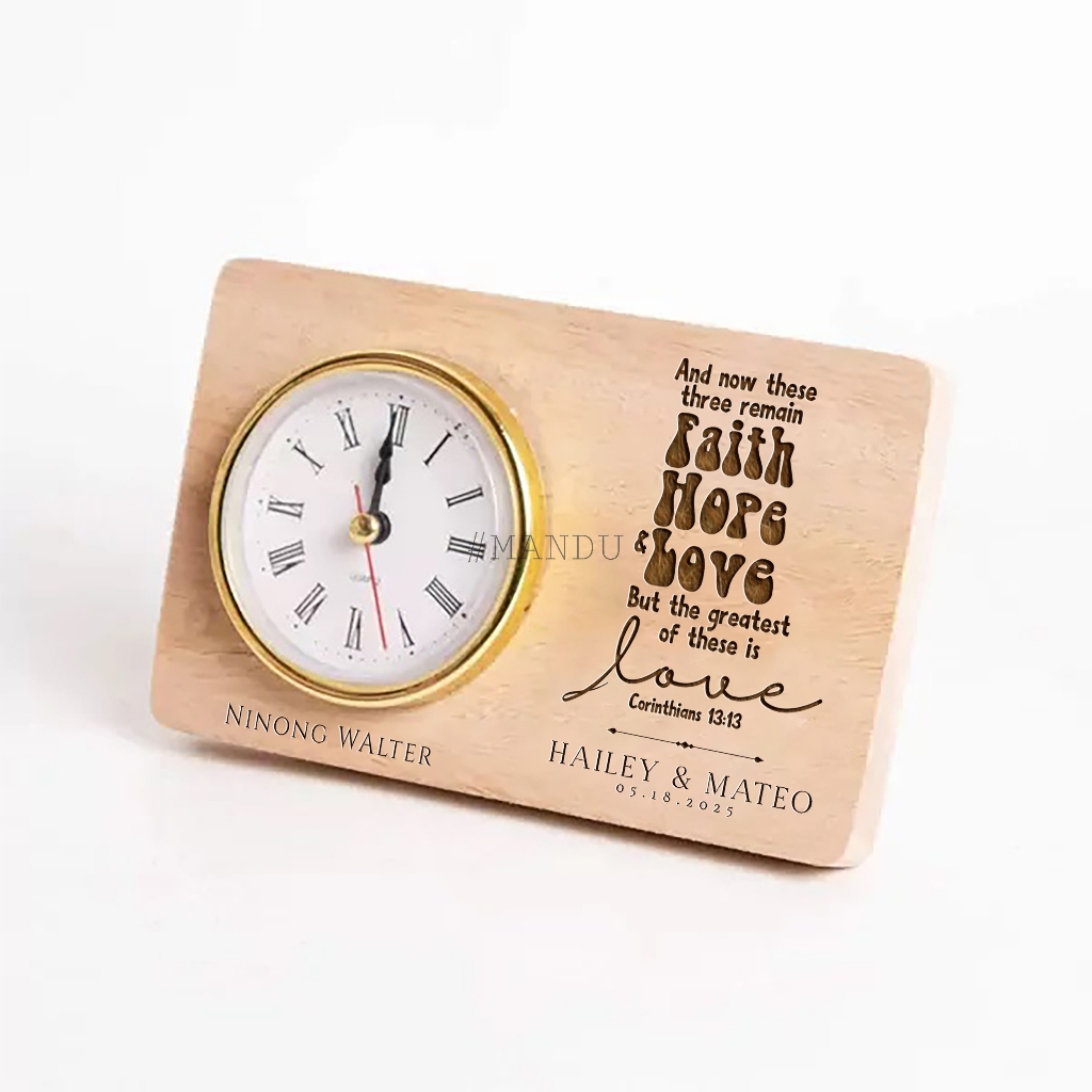 MANDU Personalized Mini Wooden Desk Clock With Stand - Laser Engraved Wedding Souvenir, Gift & Decor