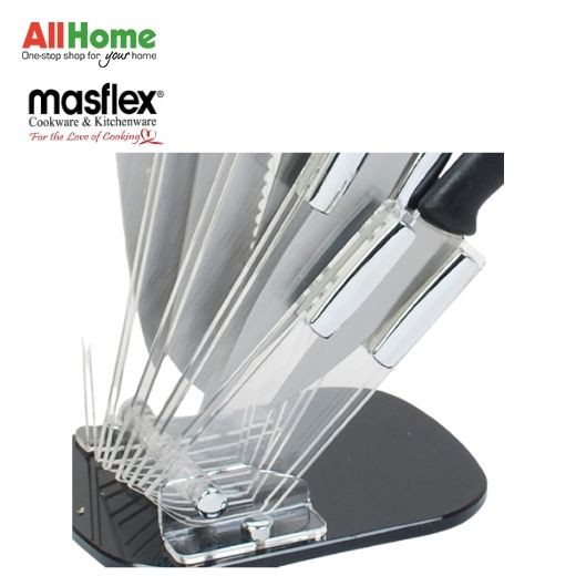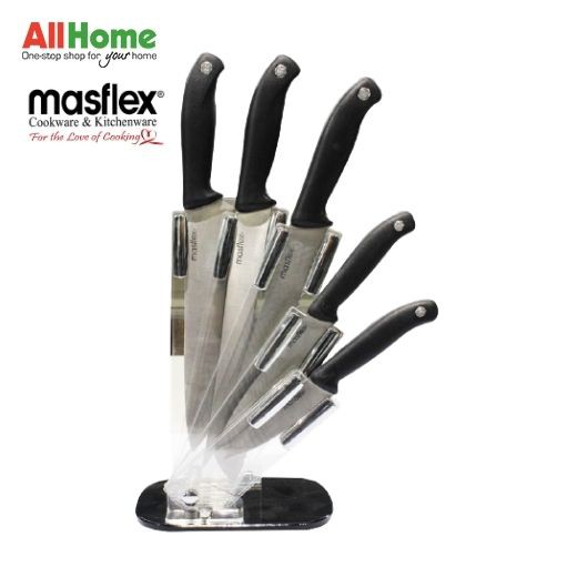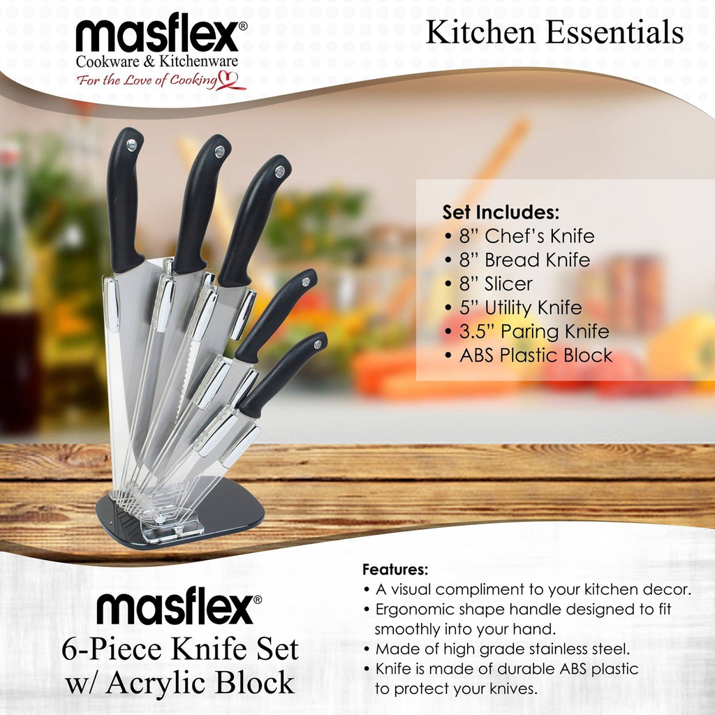 MASFLEX Chef's Knife, Bread Knife, Slicer, Utility Knife, Paring Knife, ABS Plastic Block Knife Set