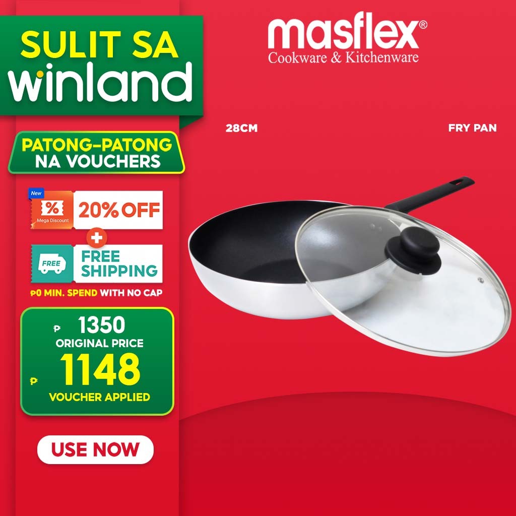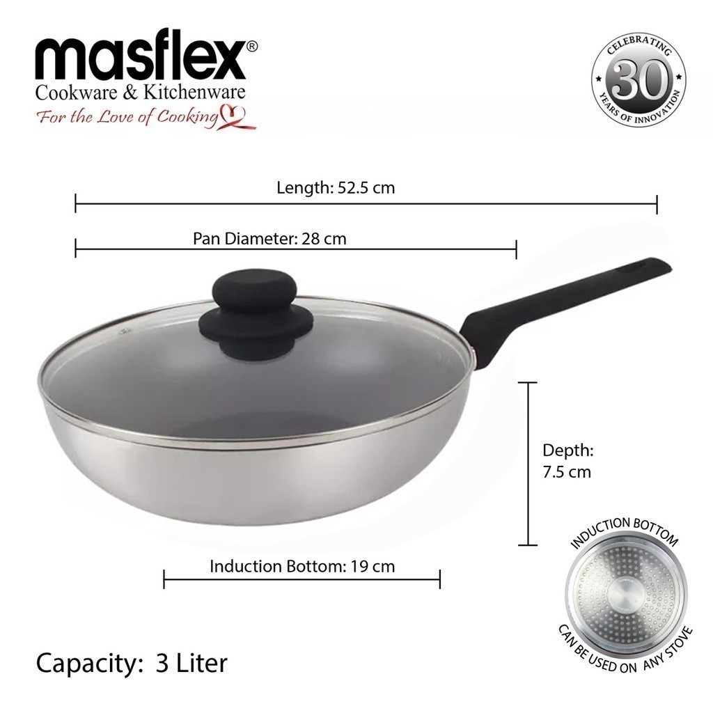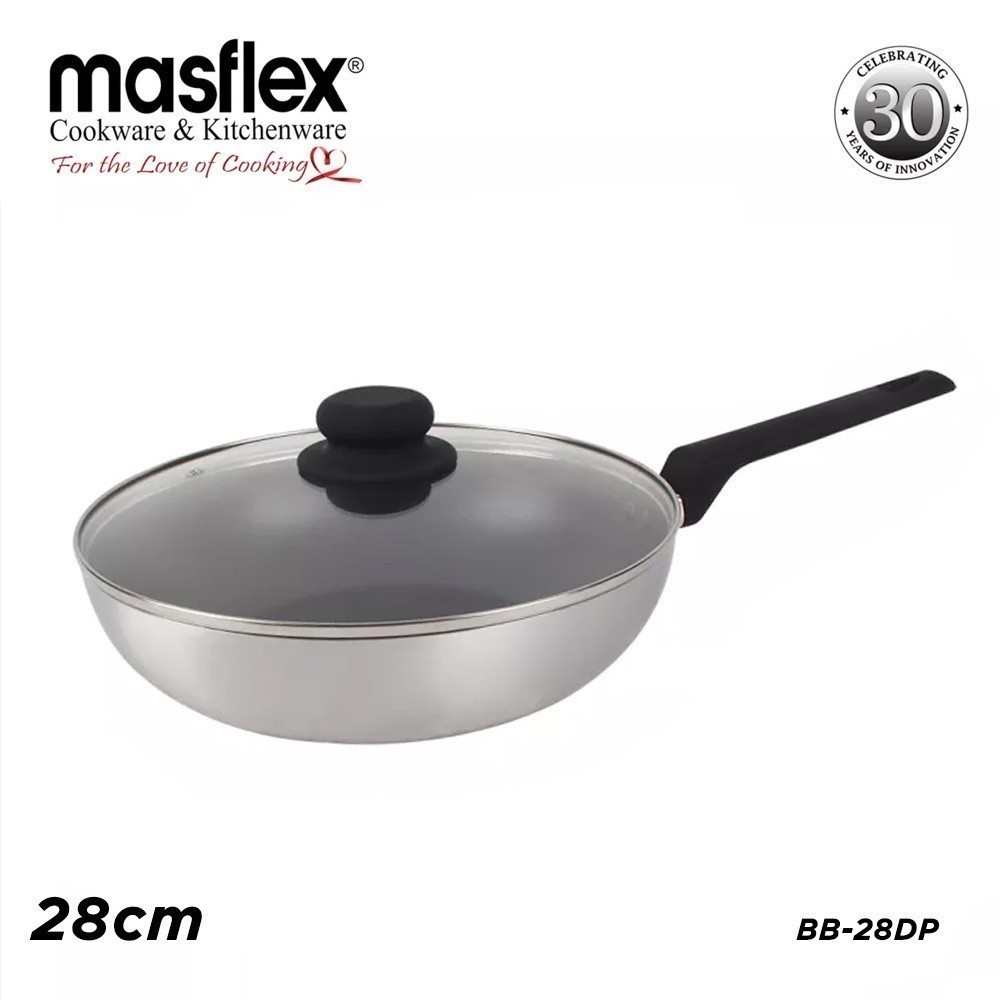Masflex by Winland Non Stick Satin Induction Deep Frying Fry Pan w/ Glass Lid 28cm BB-28DP