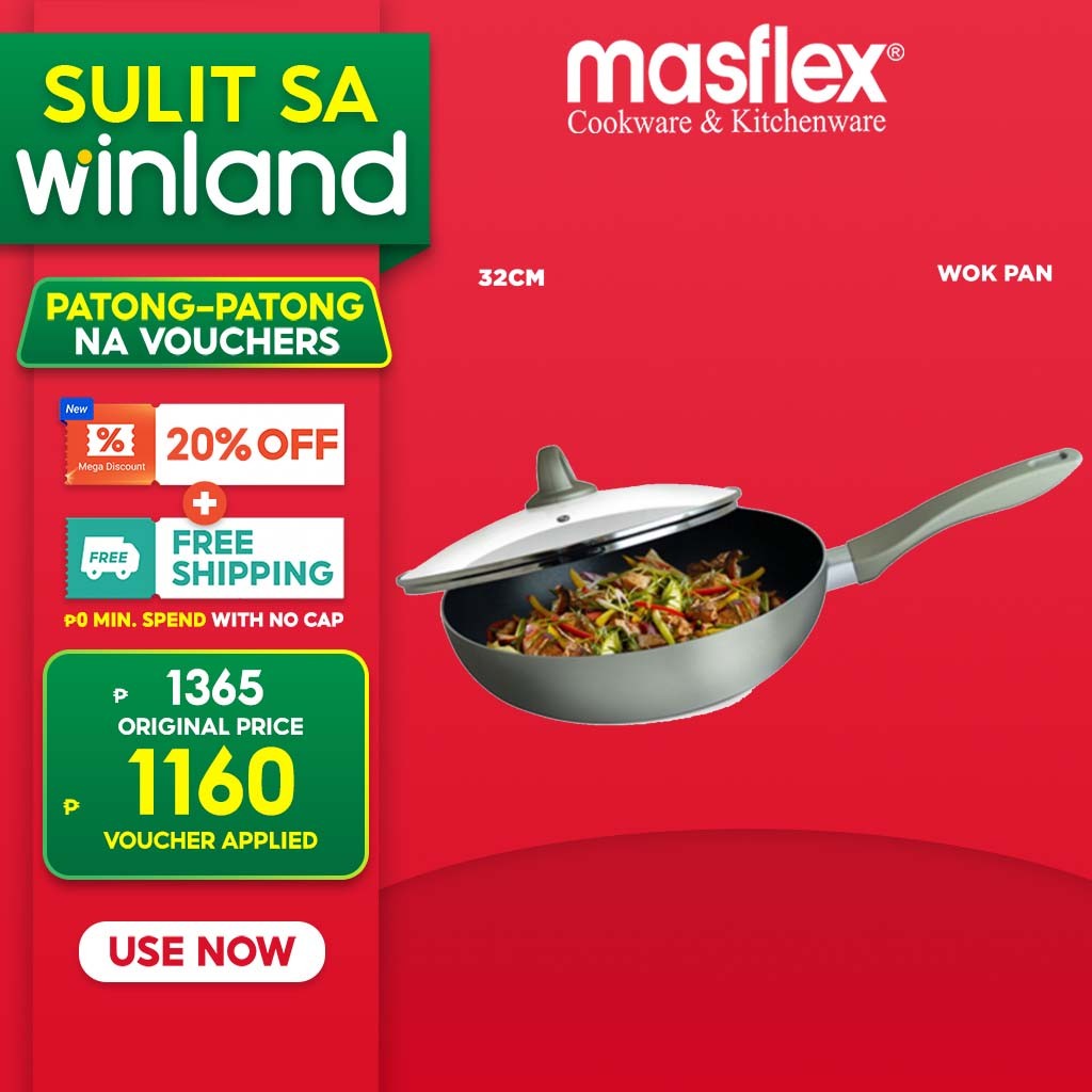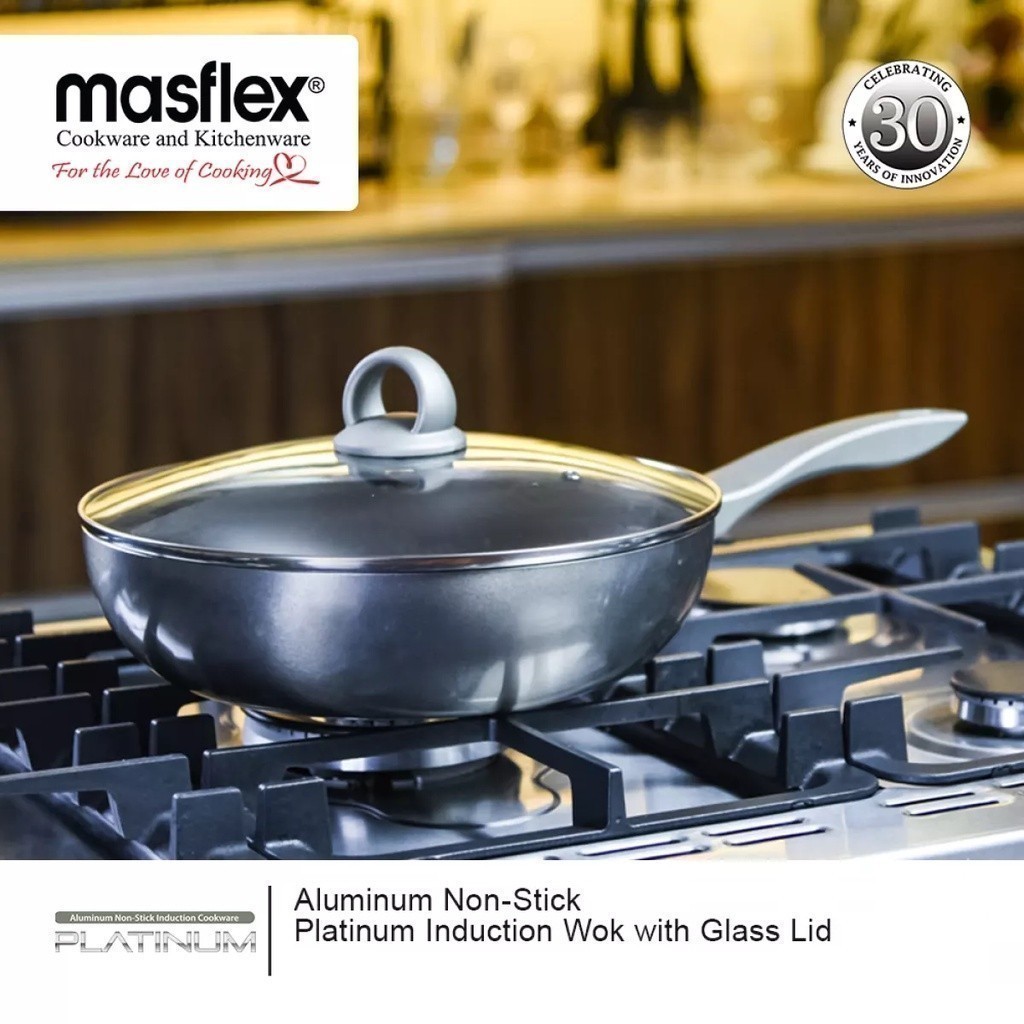 Masflex by Winland Platinum Series 32 cm Aluminum Non Stick Induction Wok w/ Glass Lid NK-P708