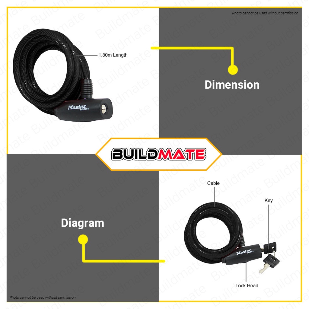 MASTER Anti-Theft Bike Bicycle Lock with Cable 1.8M X 8mm BLACK GRAY BLUE RED SOLD PER PIECE