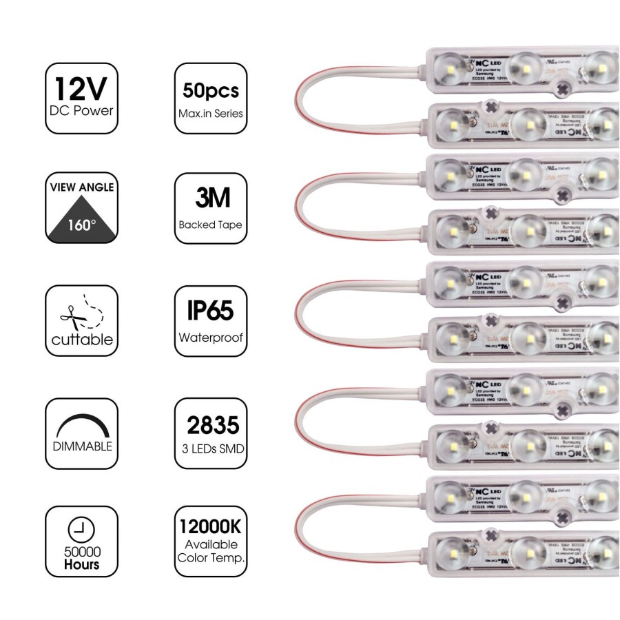 MATA [50 Pcs] 3 EYE LED MODULE LIGHT NC LED SAMSUNG 2835 DOVE WHITE 1.2W MADE IN KOREA 5 YEAR WARRANTY