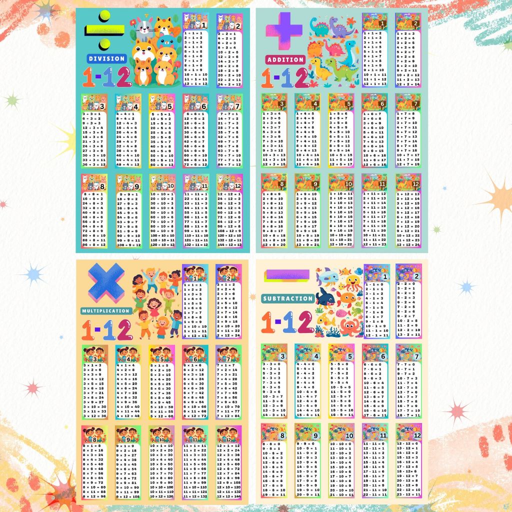 MATH Educational Charts Laminated A4 Size