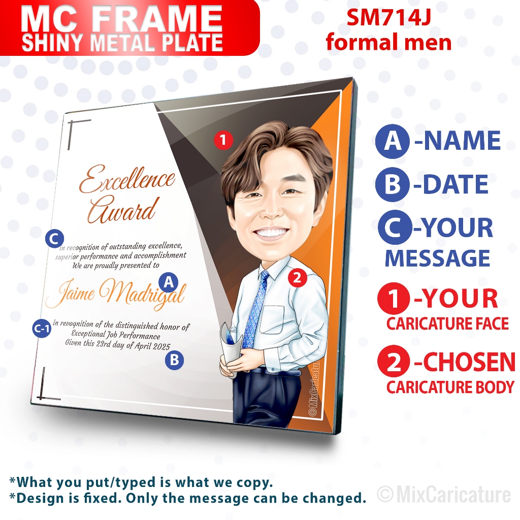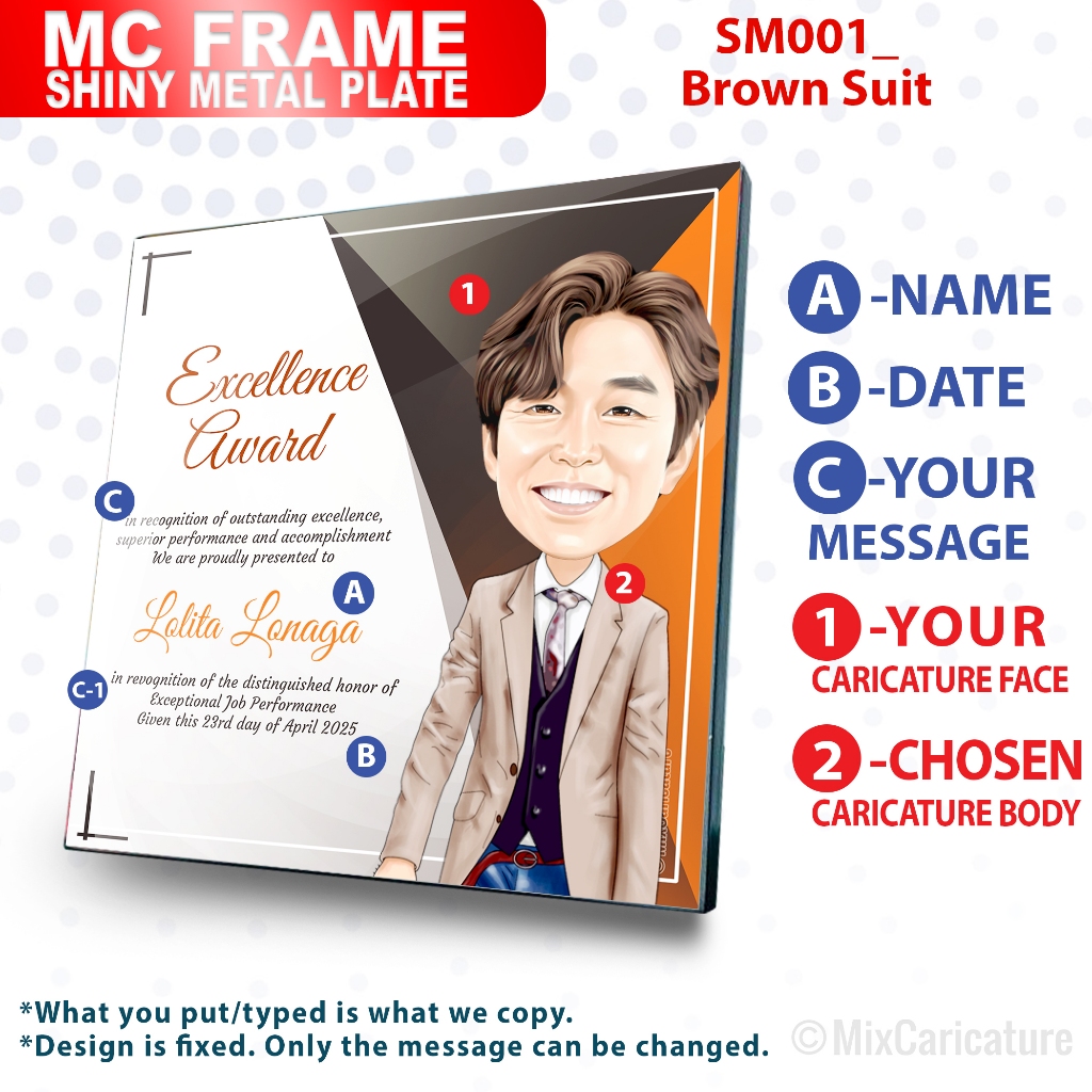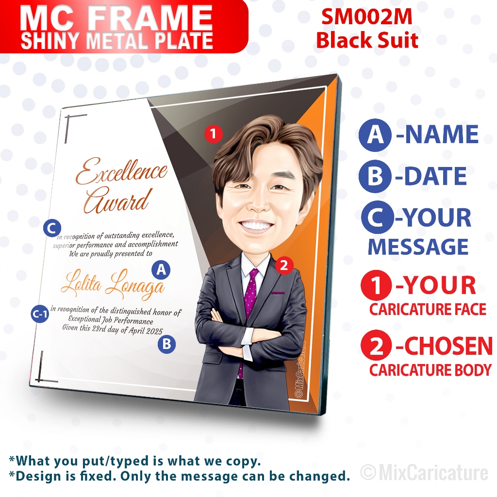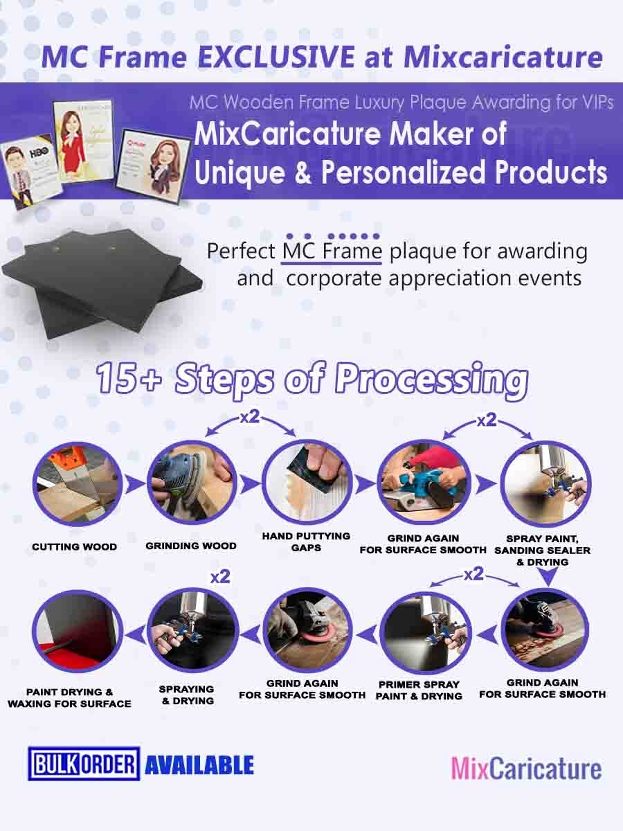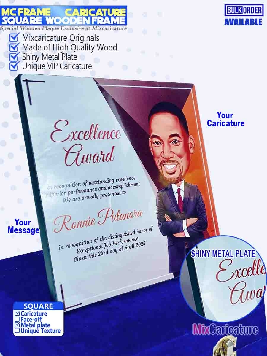 MC FRAME CARICATURE PLAQUE - Square Shiny Metal with DESIGN CODE: MCCM003 (We Accept Bulk Order)