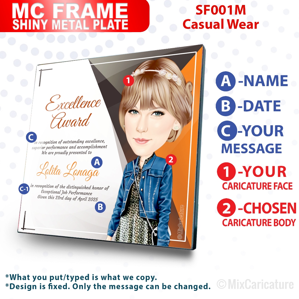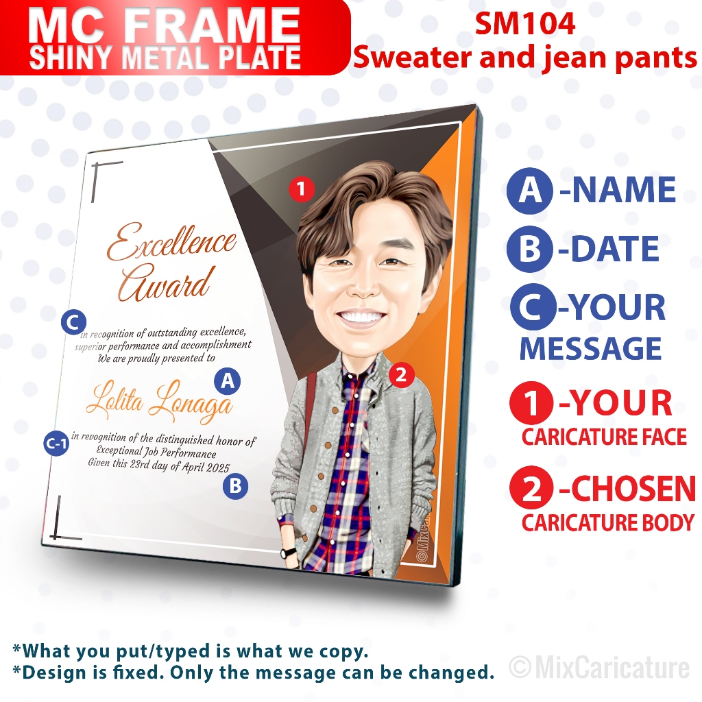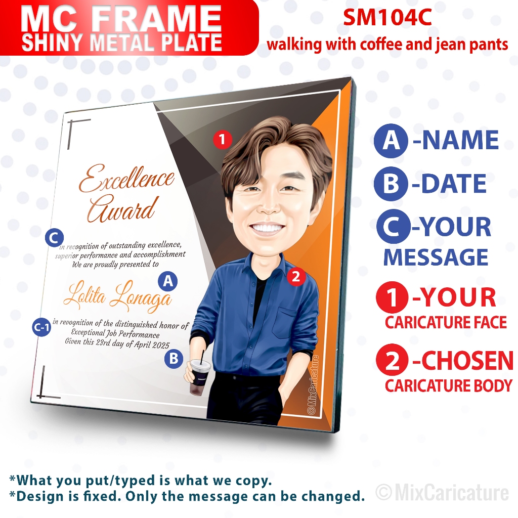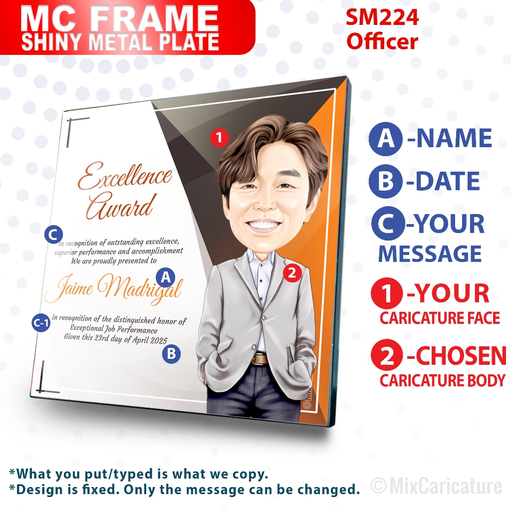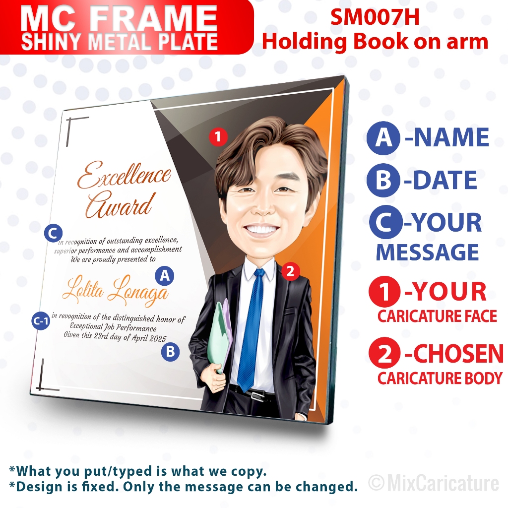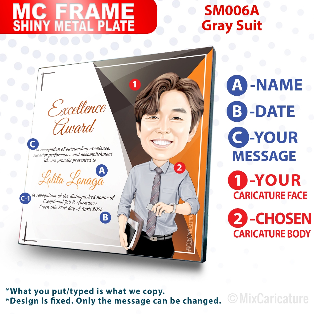 MC FRAME CARICATURE PLAQUE - Square Shiny Metal with DESIGN CODE: MCCM003 (We Accept Bulk Order)