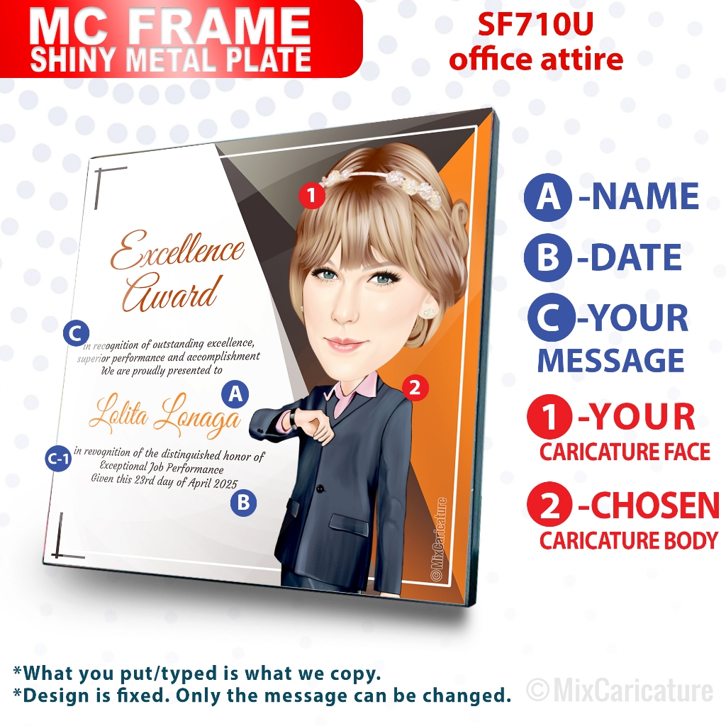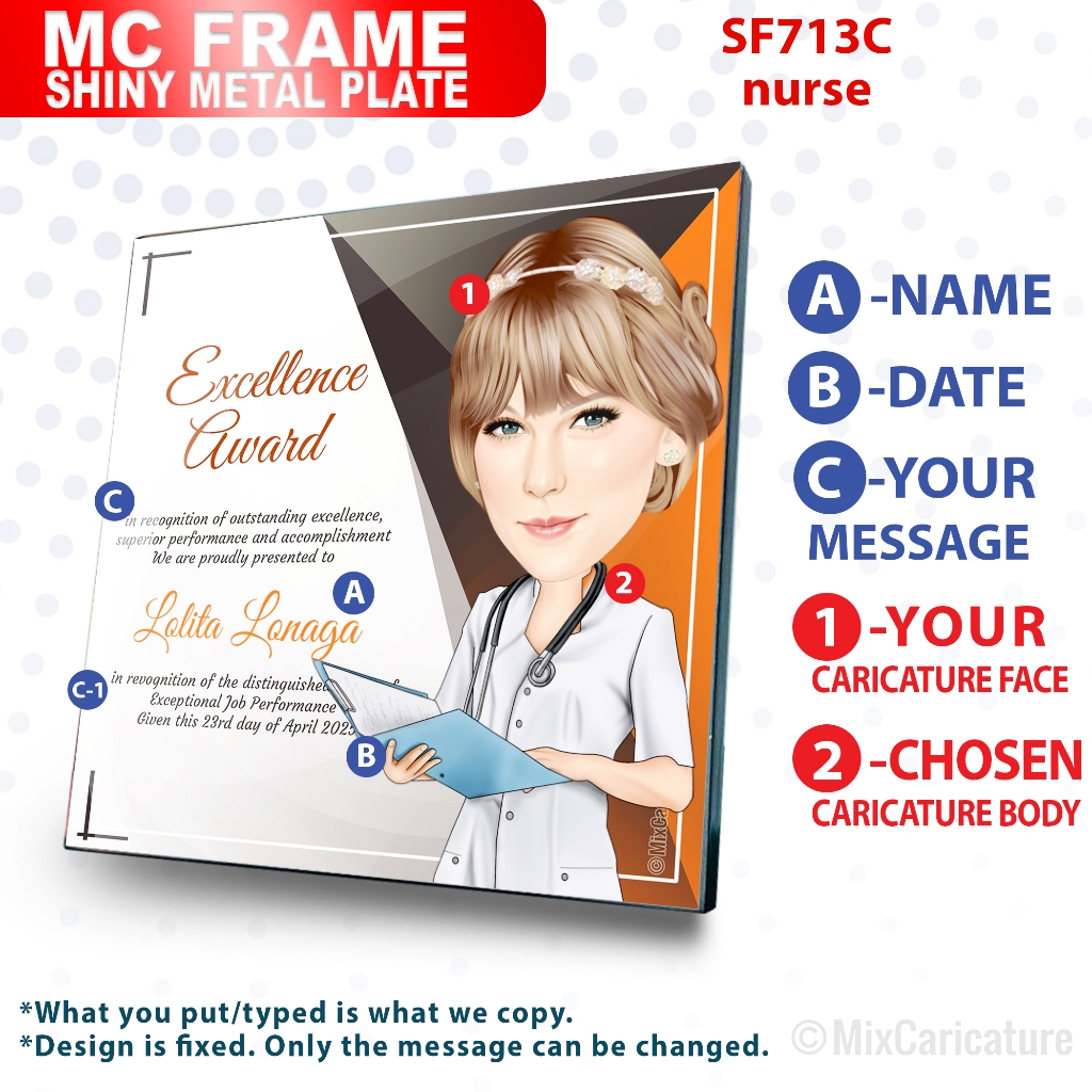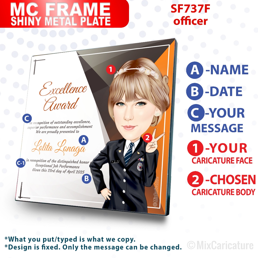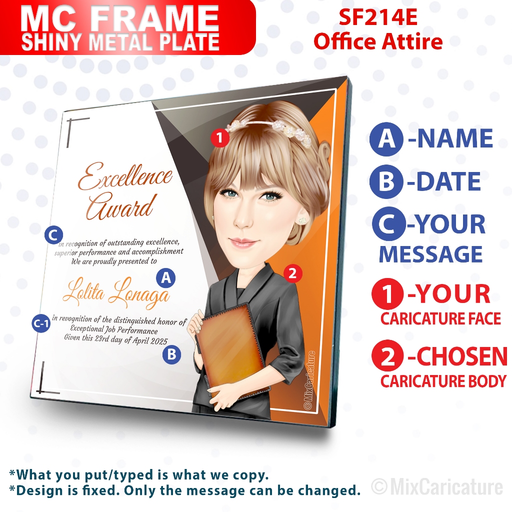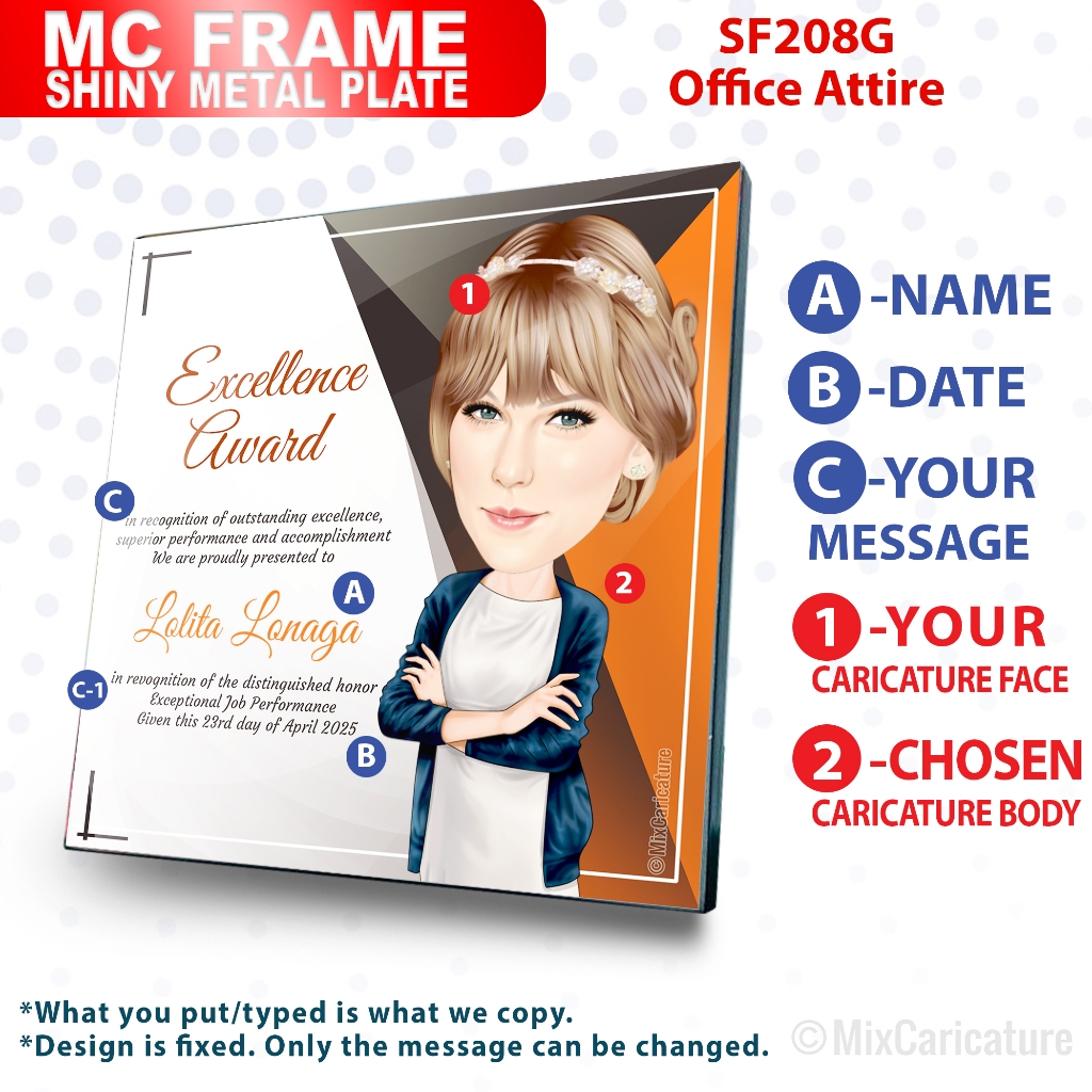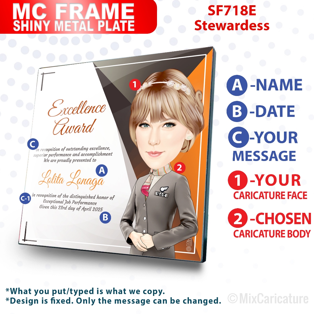 MC FRAME CARICATURE PLAQUE - Square Shiny Metal with DESIGN CODE: MCCM003 (We Accept Bulk Order)