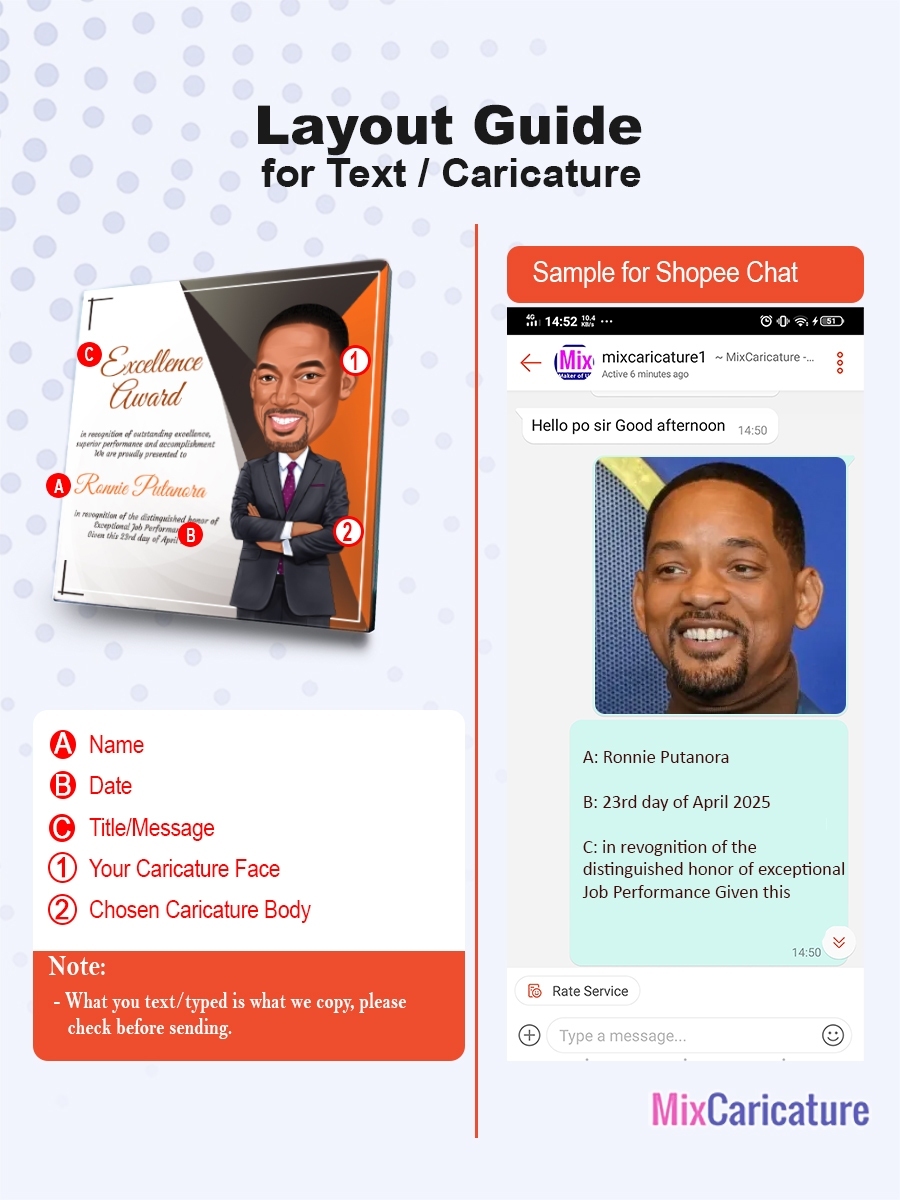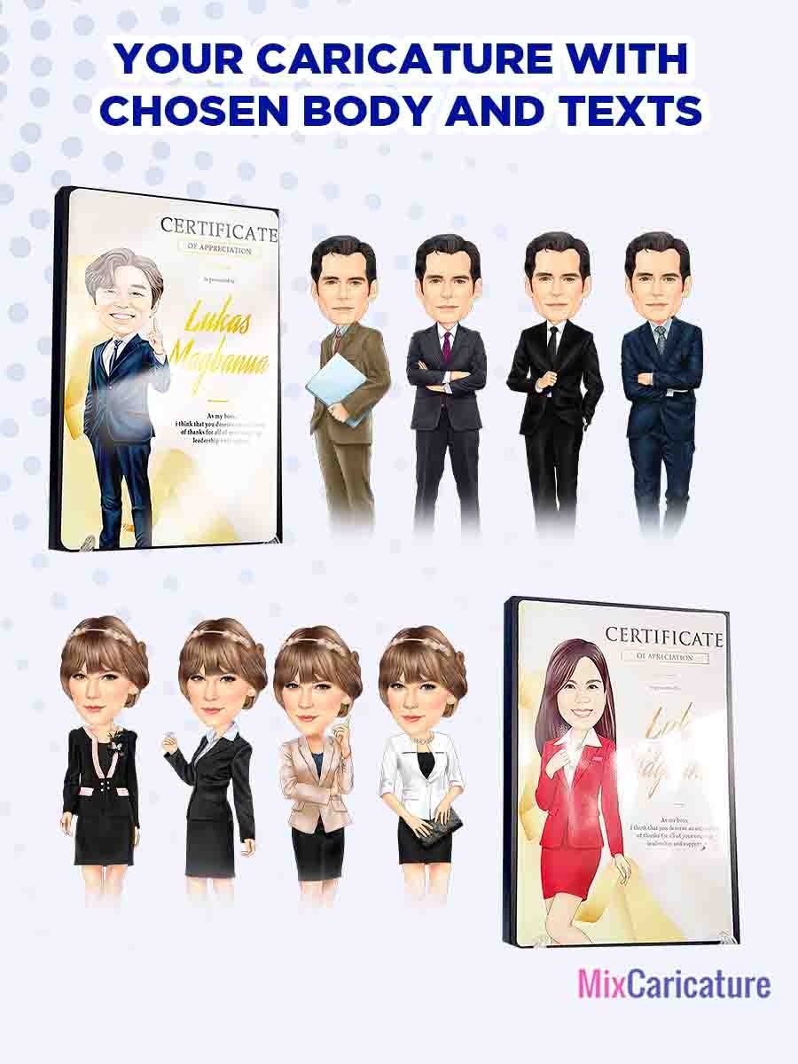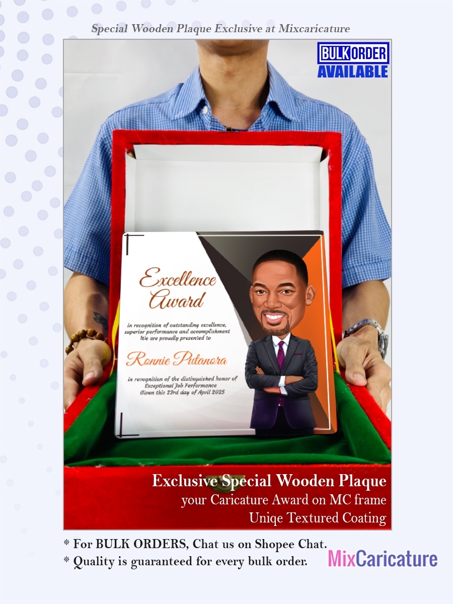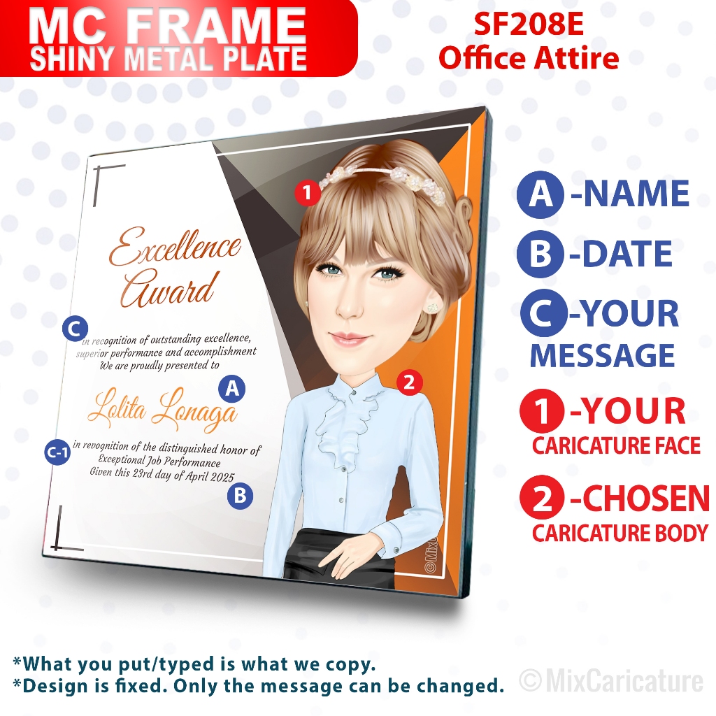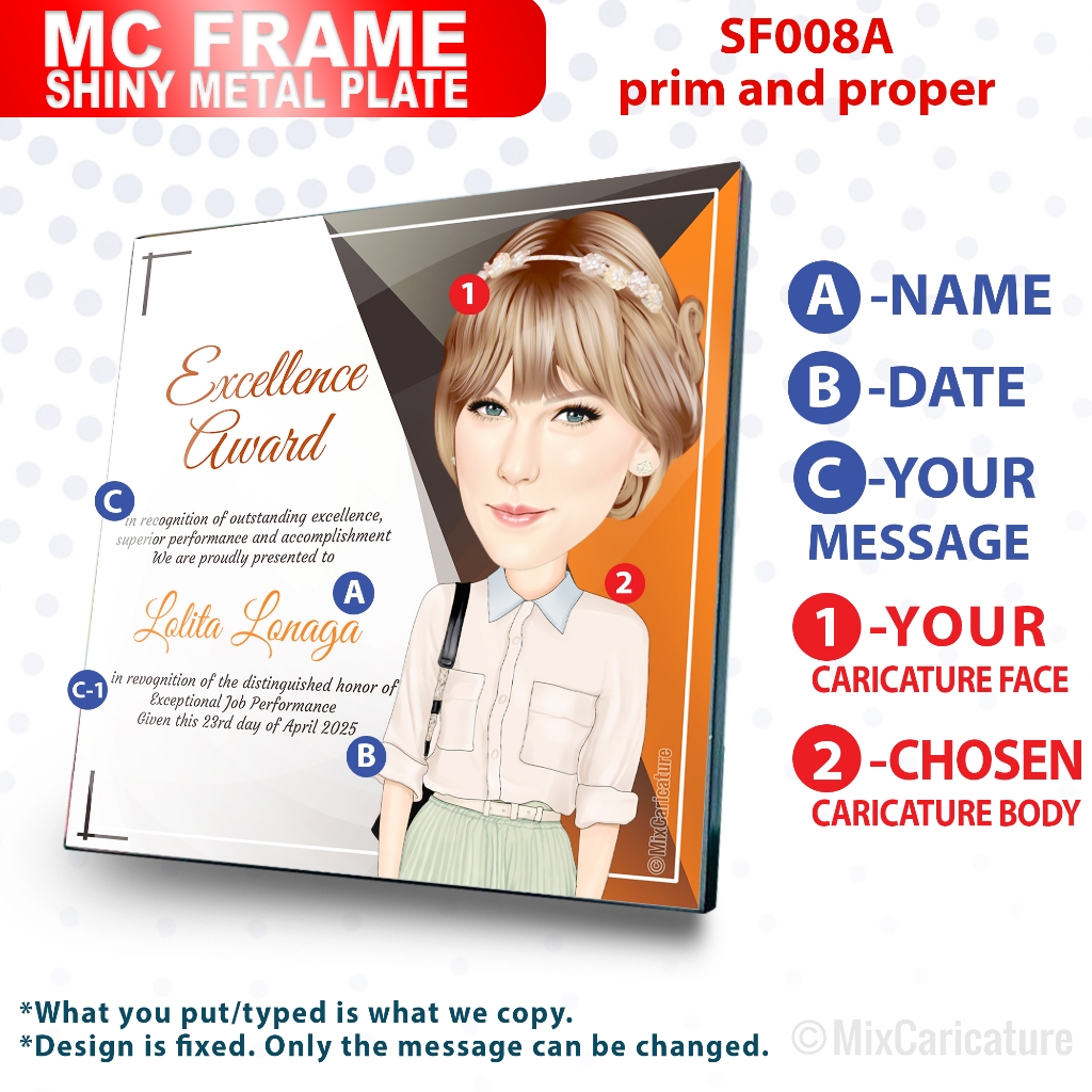 MC FRAME CARICATURE PLAQUE - Square Shiny Metal with DESIGN CODE: MCCM003 (We Accept Bulk Order)