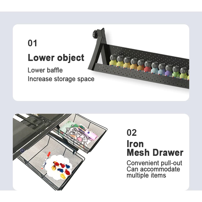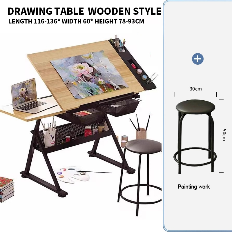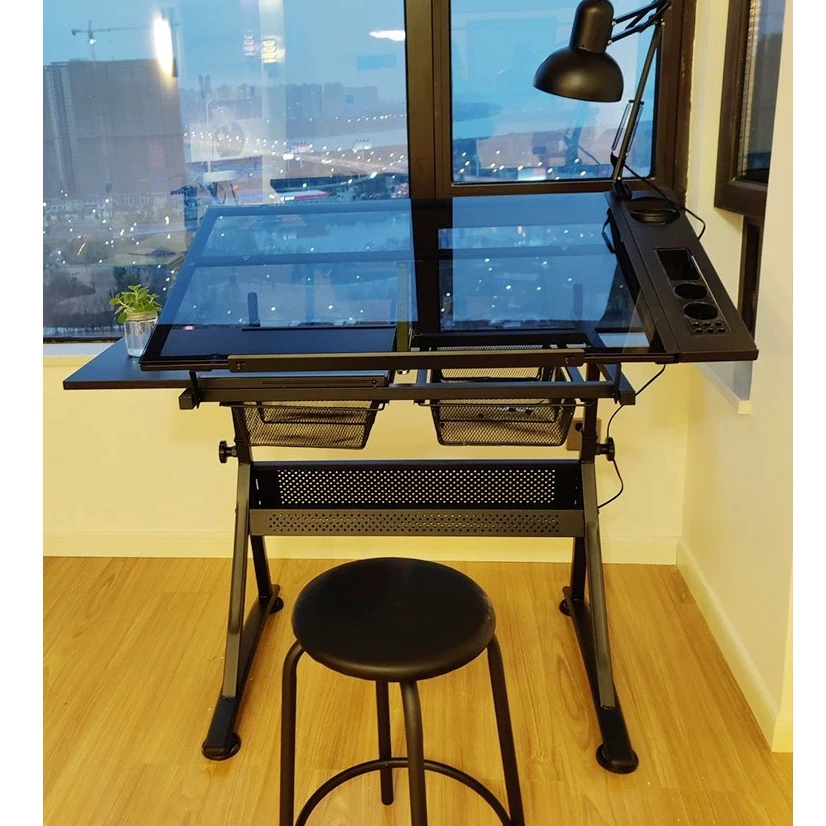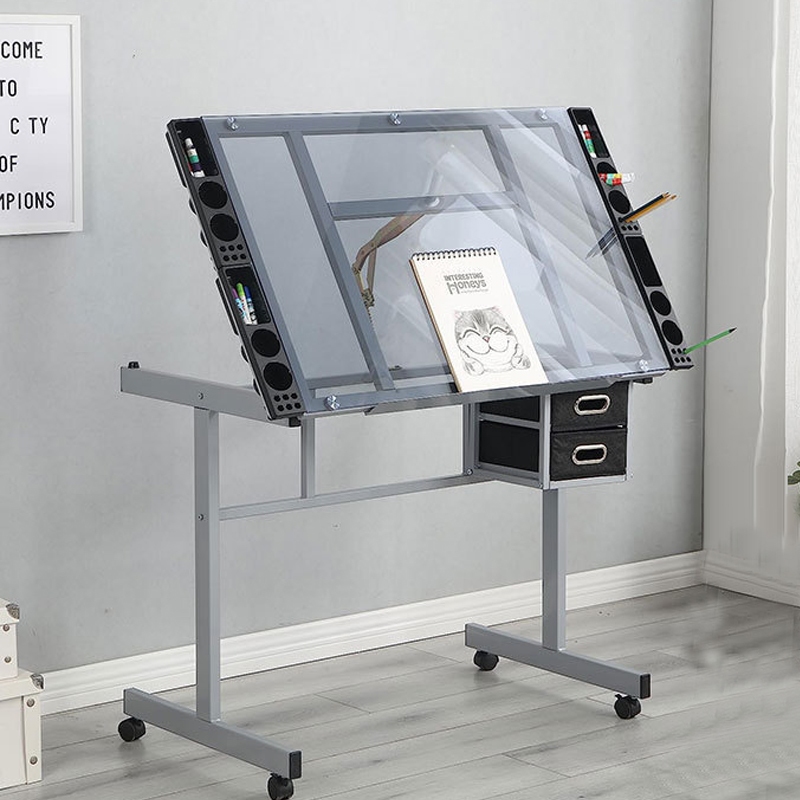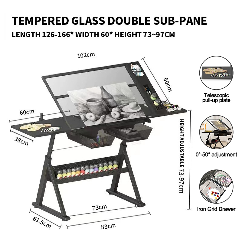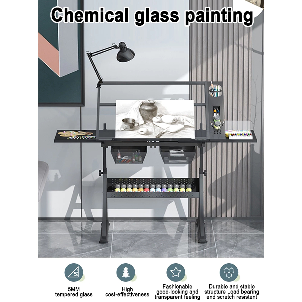 MC Painting table Liftable art drawing table Extra Side Drawers Tempered glass oil painting table