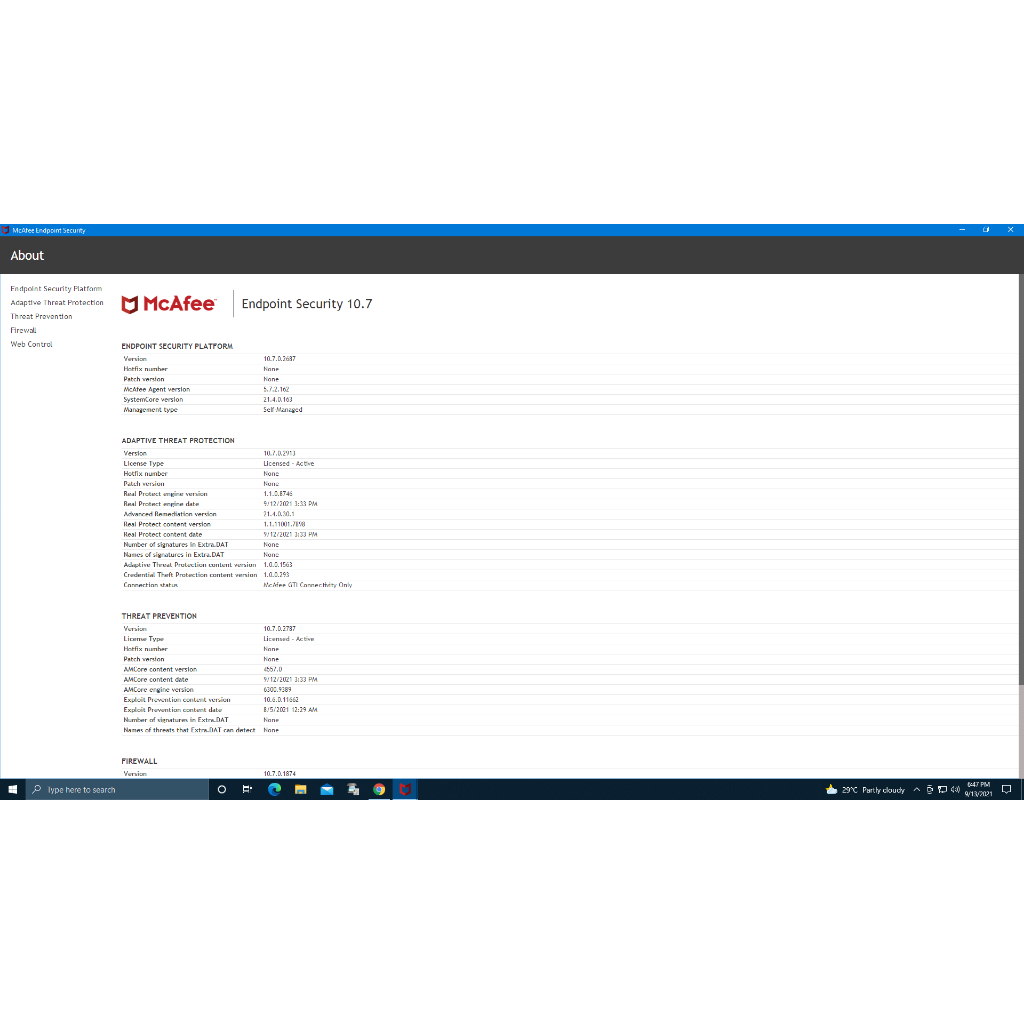 MCAFEE ENDPOINT SECURITY FOR WINDOWS