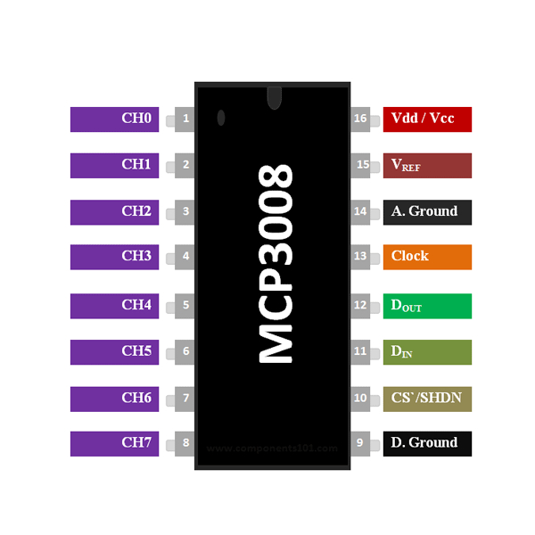 MCP3008 10-bit ADC IC 16 pins SPI interface compatible with Raspberry Pi , Arduino or other MCU