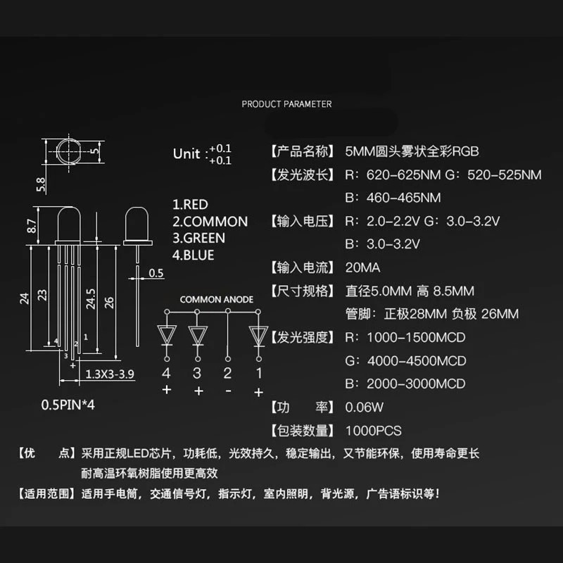MCXK-E 10Pcs Multicolor 4pin 5mm RGB Led Diode Light Lamp Tricolor Round Common Anode LED F5 Light Emitting Diode Red Green Blue