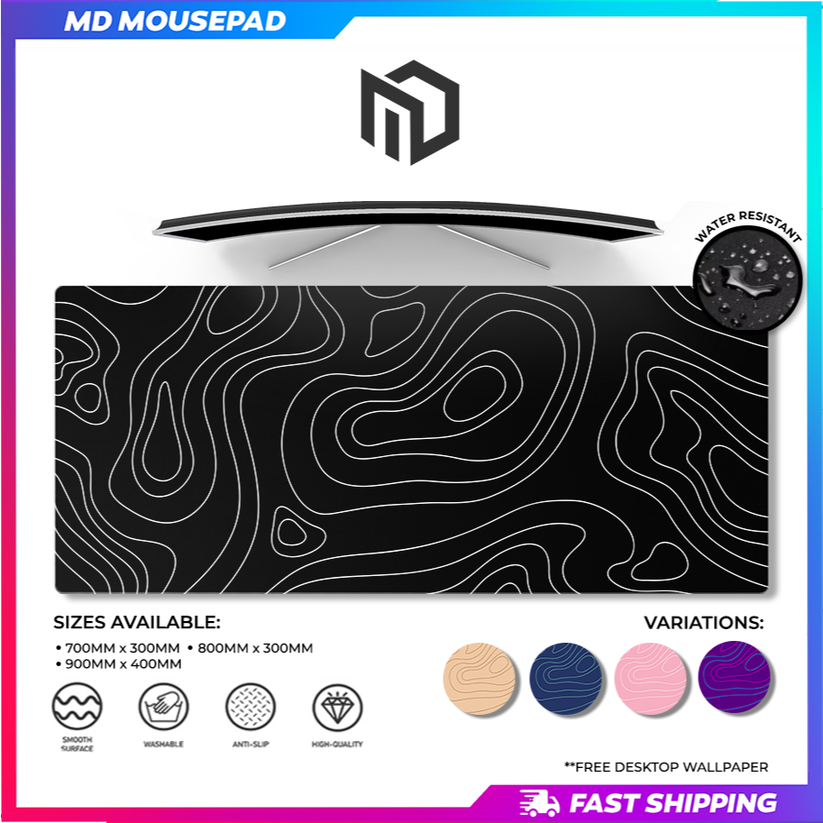 MD Mousepad | Topographic | Extended Large Gaming Mouse pad Deskmat Water-resistant Minimalist