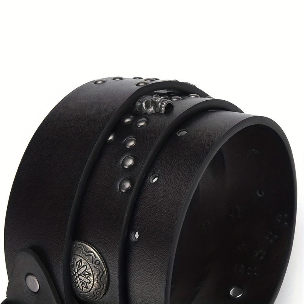 ME Bohemian Style Belt, Punk Hip Hop Leather Belt, Rock Skeleton Head Riveted Pants Bands Y2K Style