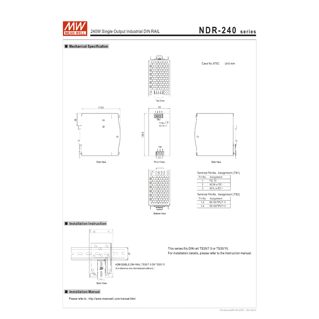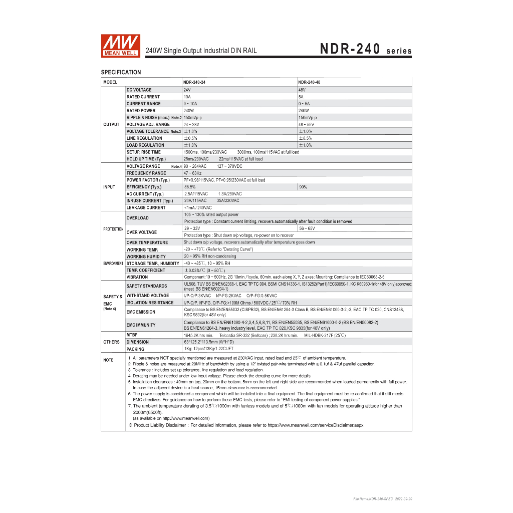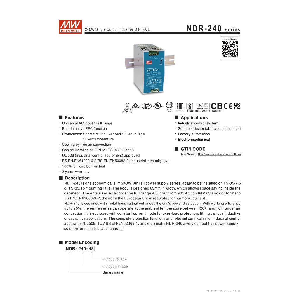 MEAN WELL NDR-240 NDR-240-24 NDR-240-48 240 Single Output Industrial DIN RAIL Switching power supply