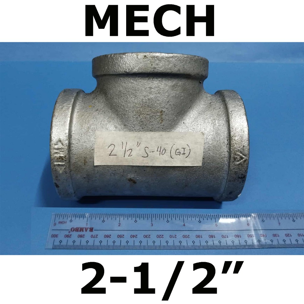 MECH GI TEE 2-1/2" SCH40 STANDARD THREADED GALVANIZED IRON === 2-1/2" X 150#