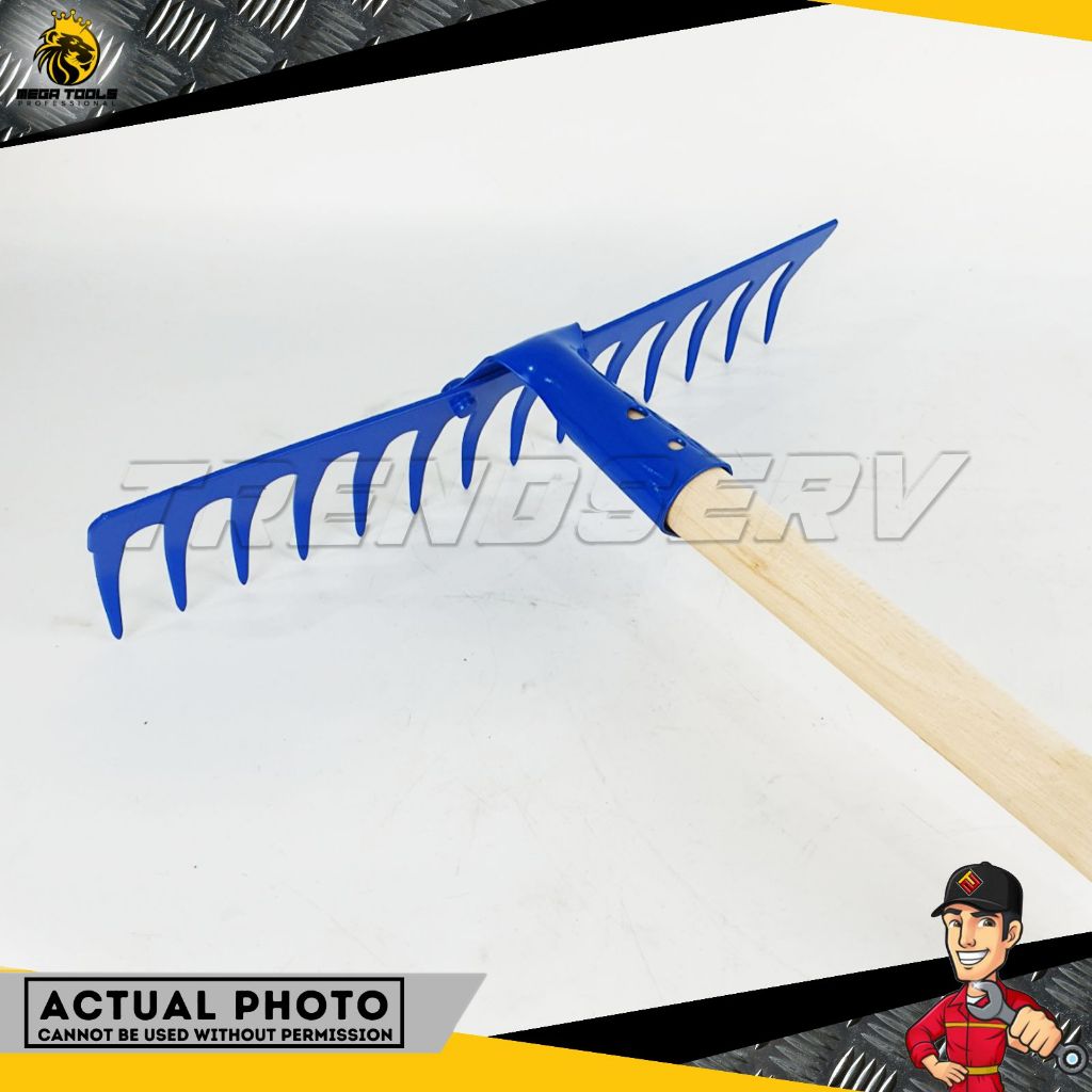 MEGA - Garden Rake 14 Tines for Gardening KALAYKAY WITH WOODEN HANDLE