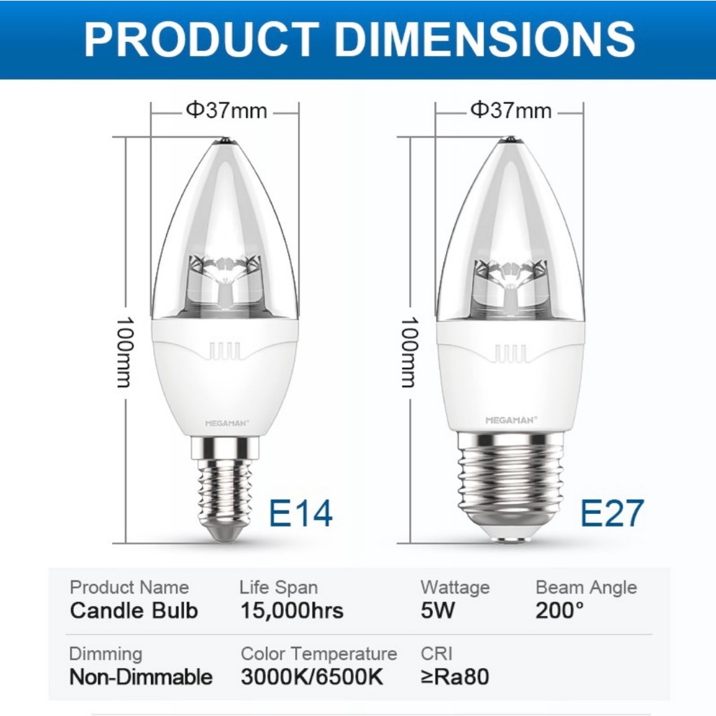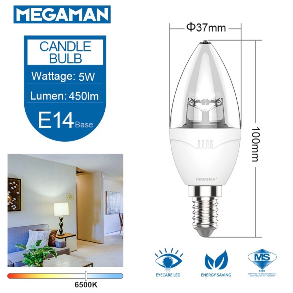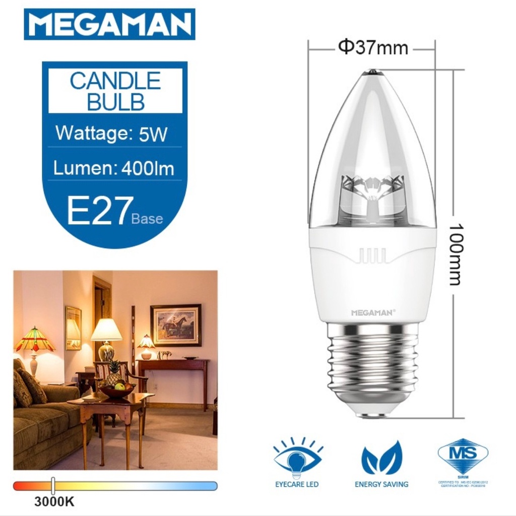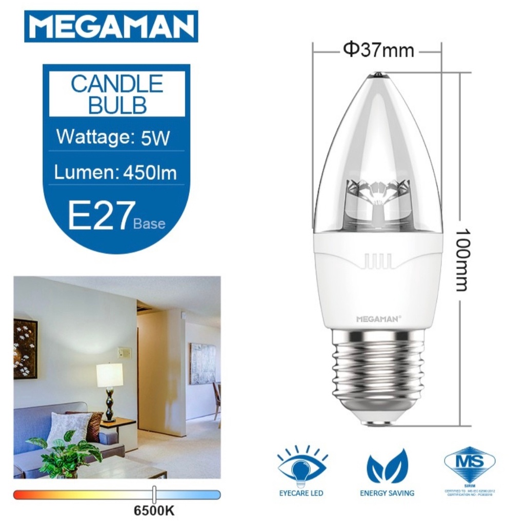 MEGAMAN LED 5W Candle Bulb E27/E14 (6500k-Daylight/3000k-Warmwhite)