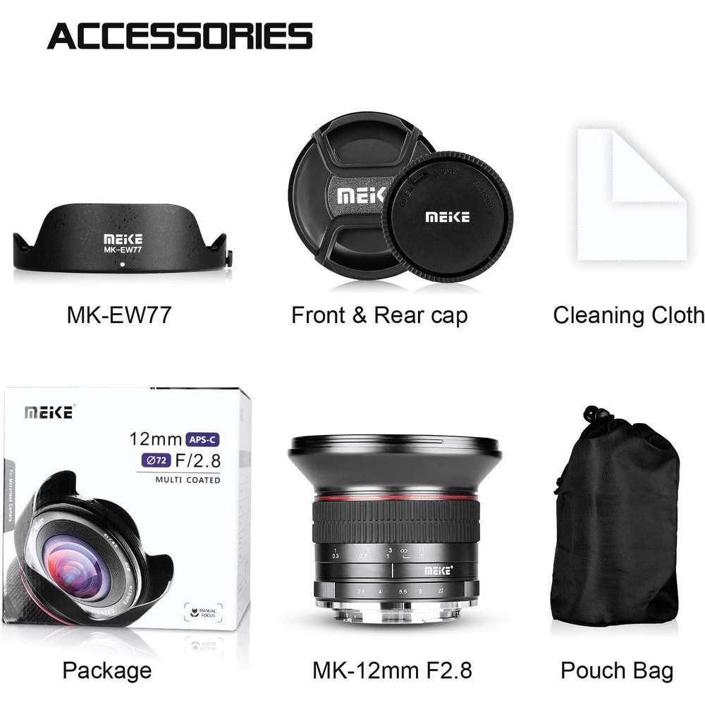 MEIKE 12mm f2.8 Ultra Wide Angle UWA Rectilinear Manual Focus Lens APS-C Xmount Emount EOSM M43 MVP