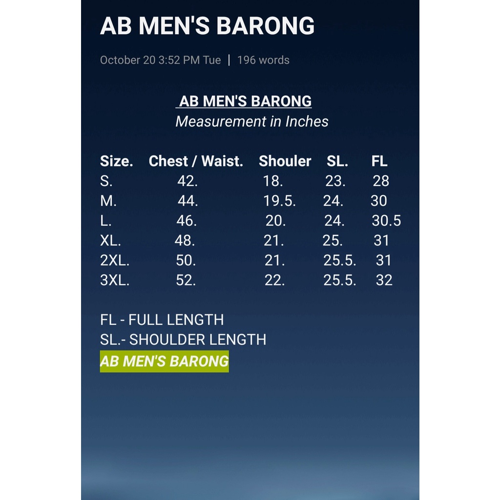 MEN'S BARONG PURE EMBROIDERED HIGH QUALITY COCOON MEN'S BARONG