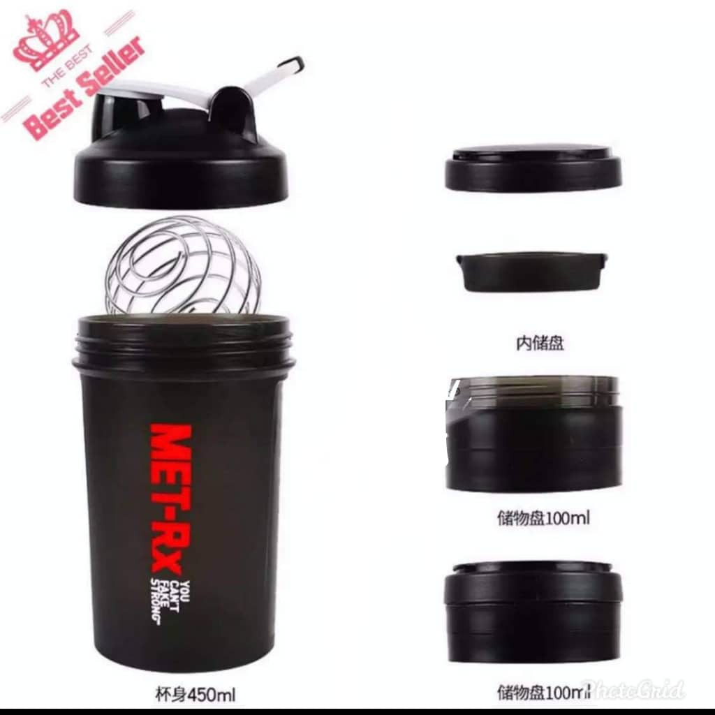 MET-RX Protein Blender Fitness Bottle Powder Shaker Cup Mixer with 3-Layer Twist Tumbler 450ML