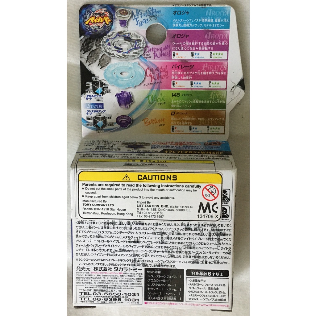 METAL FIGHT BEYBLADE ZERO G BBG08 PIRATES OROJYA 145D TAKARA TOMY