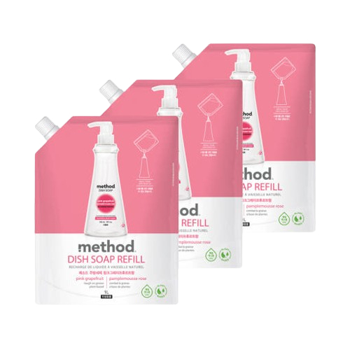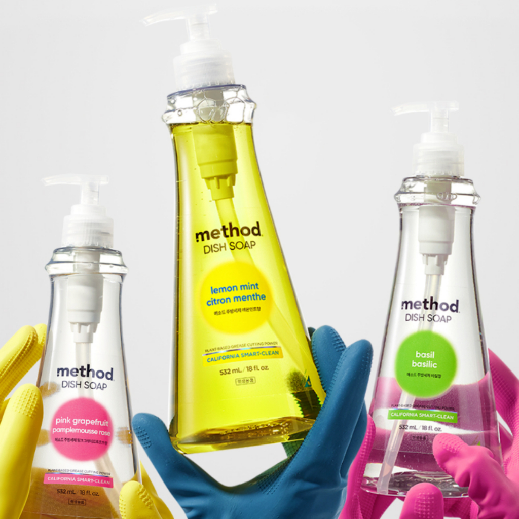 METHOD Dish Soap Liquid 532ml & 1000ml (Lemon Mint, Pink Grapefruit, Basil) - Refreshing scents for efficient dishwashing