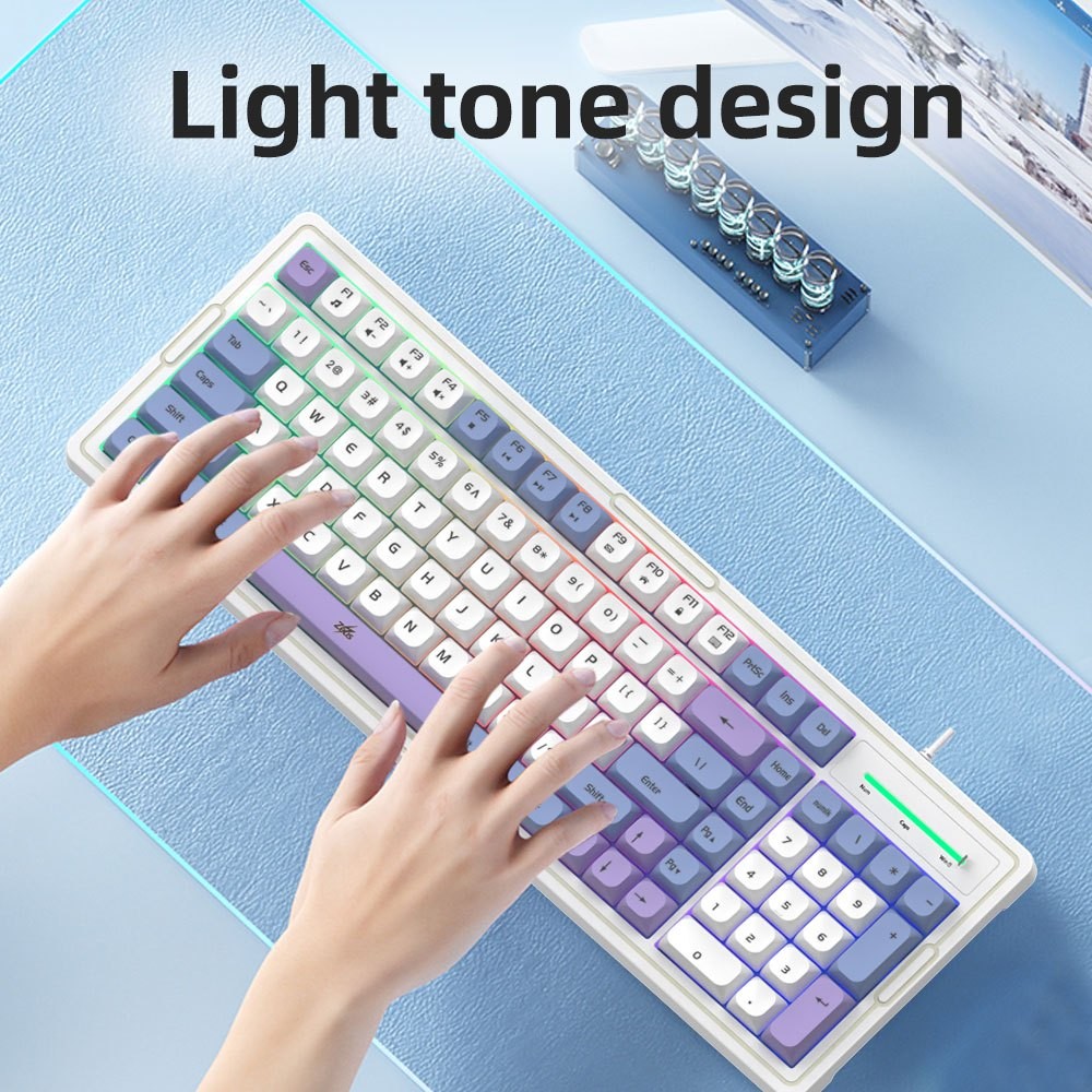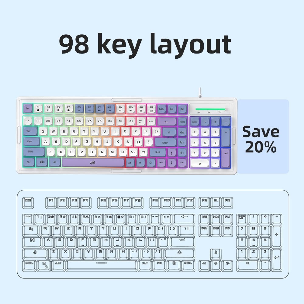 METMI 96% K-24 Gaming Keyboard Rainbow Backlit 98 Keys Compact USB Wired Keyboard 2 Colors