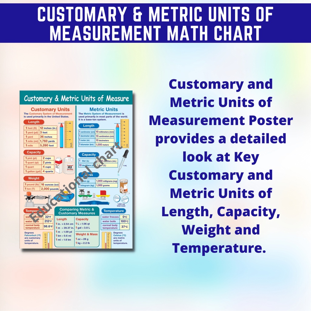 METRIC UNITS OF MEASUREMENTS CHART Laminated Math Charts A4 Size for kids students