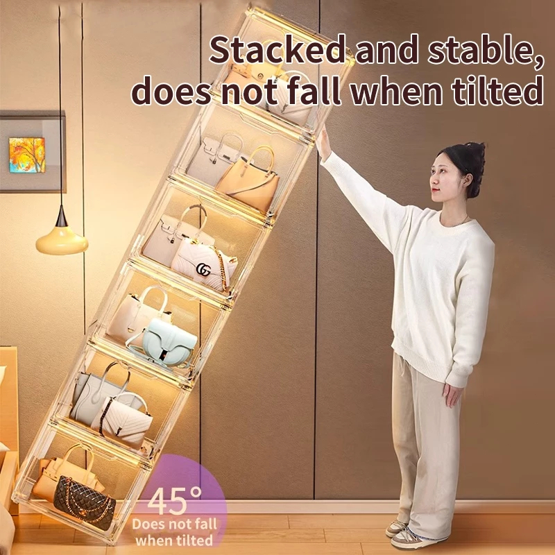 MEYOU Transparent Acrylic Bag Organizer Storage Stackable Display Stand Bag Box Display Stand Box