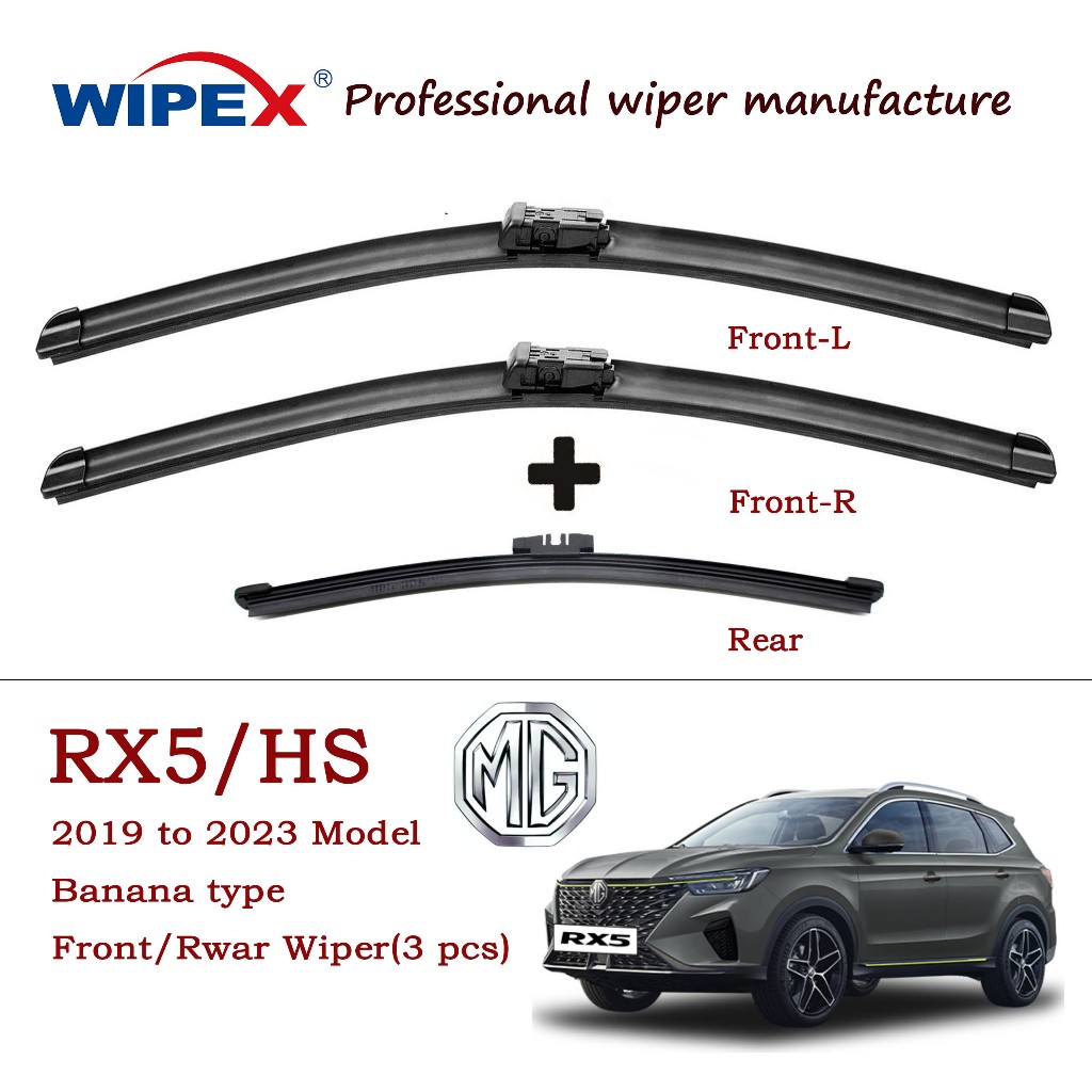 MG RX5 / HS Wiper Blade for 2019-2023 model RX-5 H S SUV Car Window Wipers Set (silicone banana Front / original Rear) from Wipex wifer (Special for SEA)