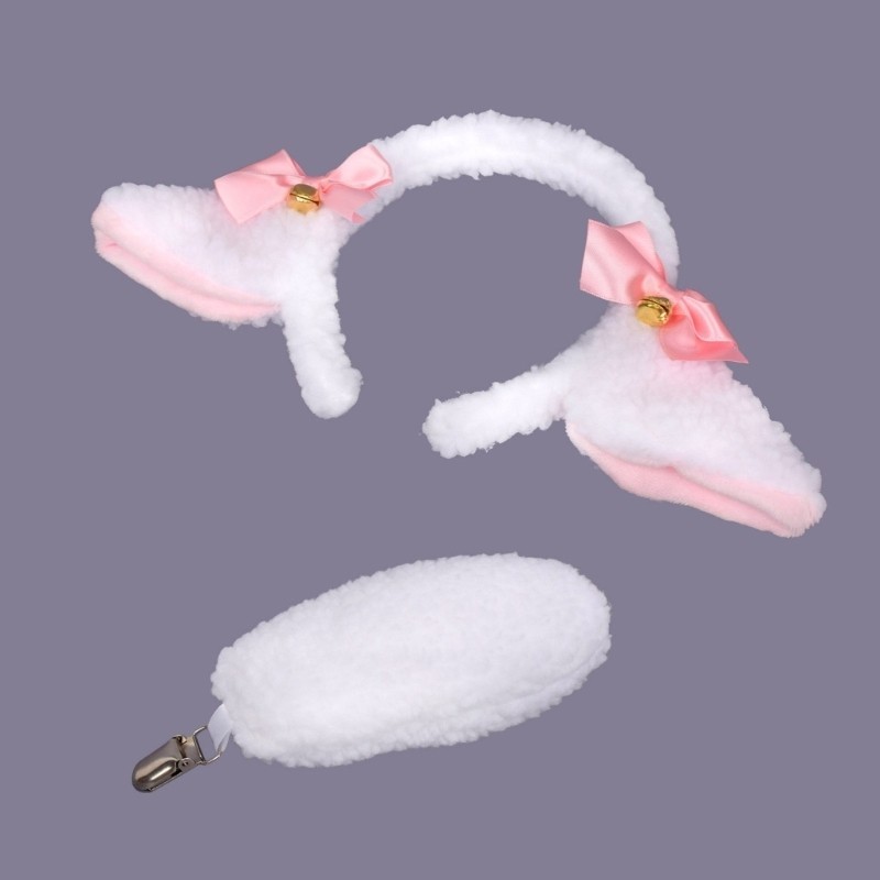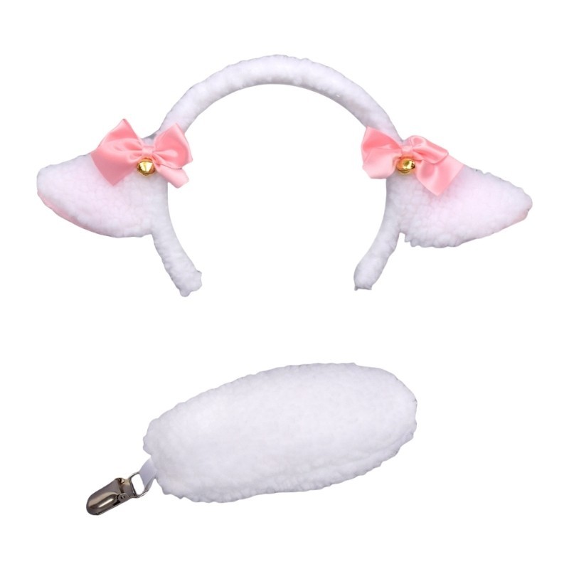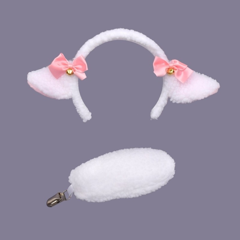 MG Sheep Costume Set Plush Sheep Ear Headband Sheep Tail Halloween Sheep Animal Costume Accessories for Kids Girl Cospla