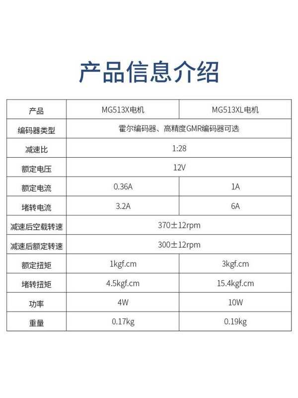 MG513XL DC Smart Car Chassis 28 Gear Ratio GMR Encoder MG513X Motor Kit