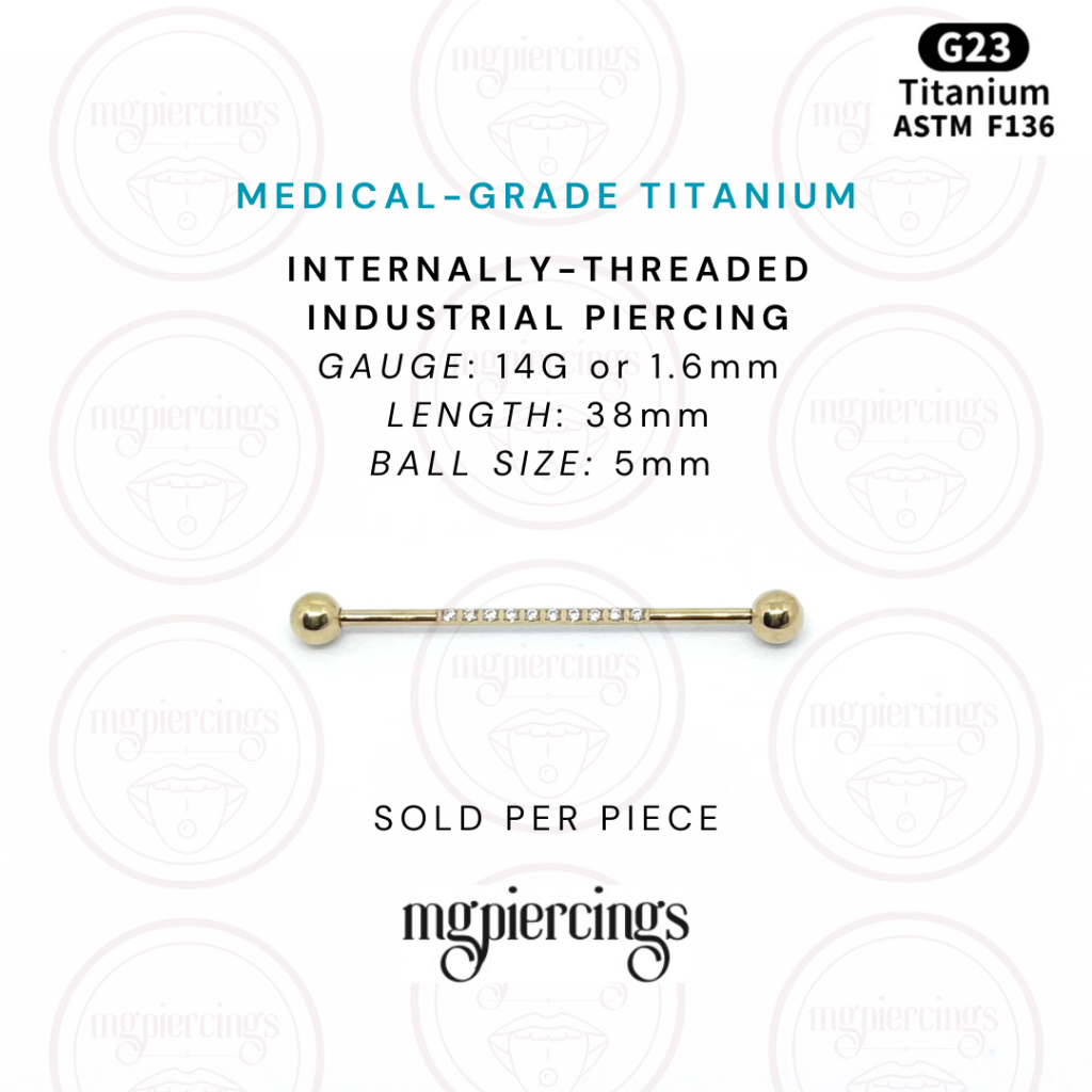 MGPIERCINGS Industrial Piercing Barbell Medical-Grade Titanium G23 ASTM F136 14G