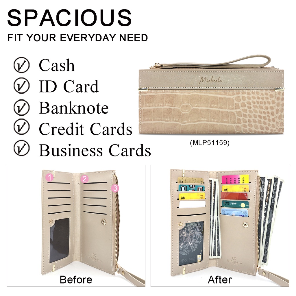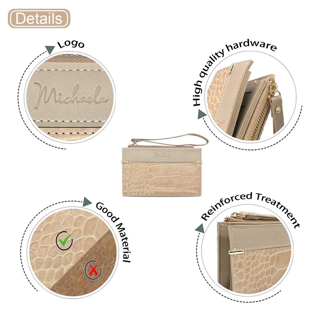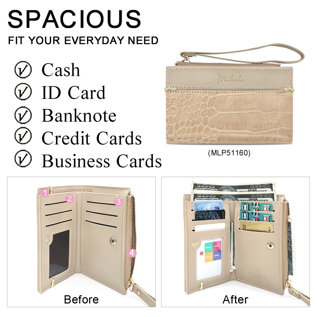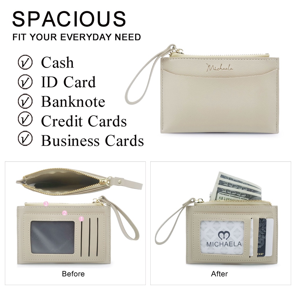 MICHAELA Fashion Small Card Wallet for Women with Wristlet Strap Leather Card Holder MLP51037 2H