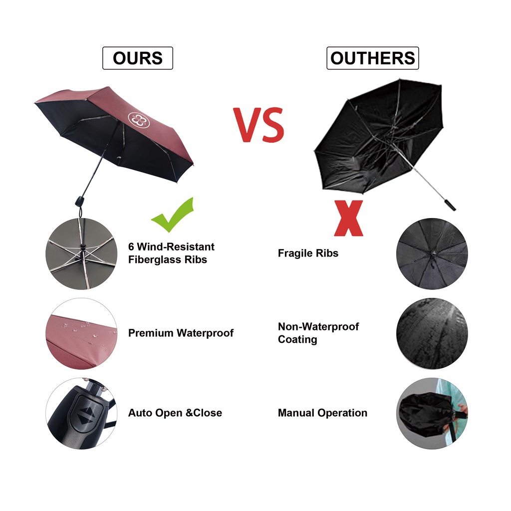 MICHAELA Small Folding Automatic Umbrella Reinforced 6 Ribs UV Umbrella for Commute Travel MUM81105