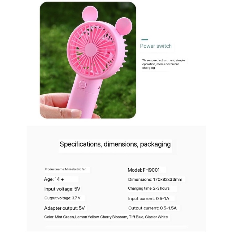 MICKEY MINIFAN RECHARGEABLE EAR MICKEY MOUSE STYLE CUTE MACARON COLOR'S PORTABLE FAN COD FH9001
