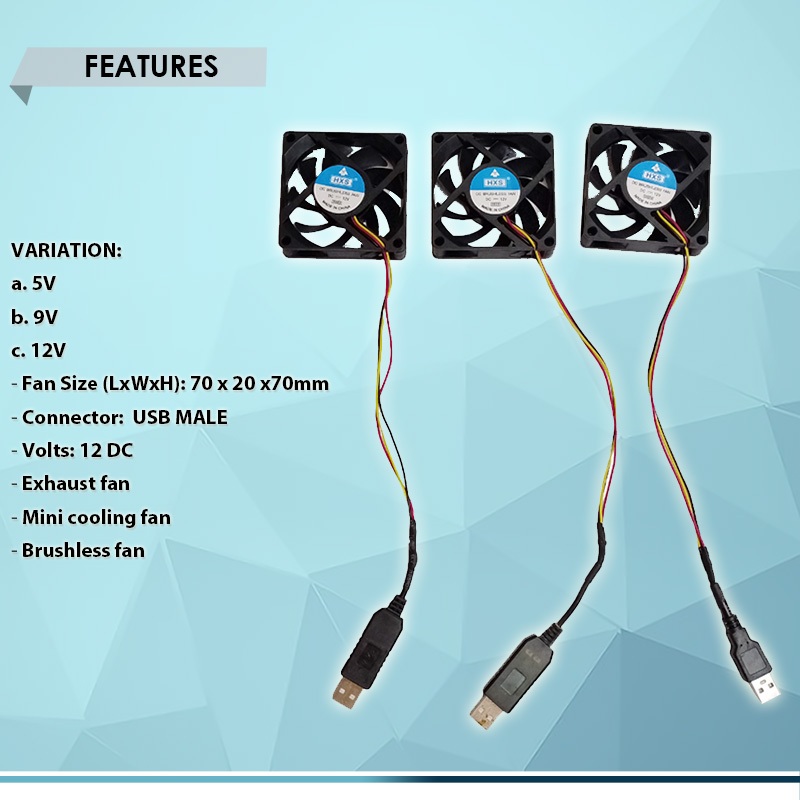 MICRO PC DC BRUSHLESS FAN 12V 70mm HXS w/ USB MALE, MINI COOLING FAN/ SMALL EXHAUST FAN
